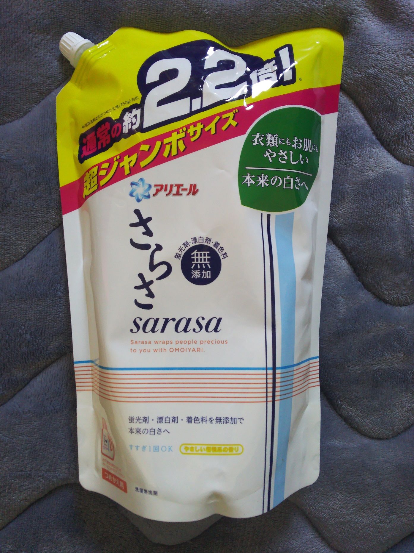洗剤落ちが良いので気に入っています。最近は花粉の量も減ってきたみたいなので、外乾しができるようになりました。でも洗濯物をまとめ洗いするのではなく、着衣にウィルスが付いていてもわからないので、頻繁に洗うようになりました。さらさ 洗濯洗剤 つめかえ用 超ジャンボサイズ(1.64kg)【mgt06】【tktk03】【wis05】【さらさ】