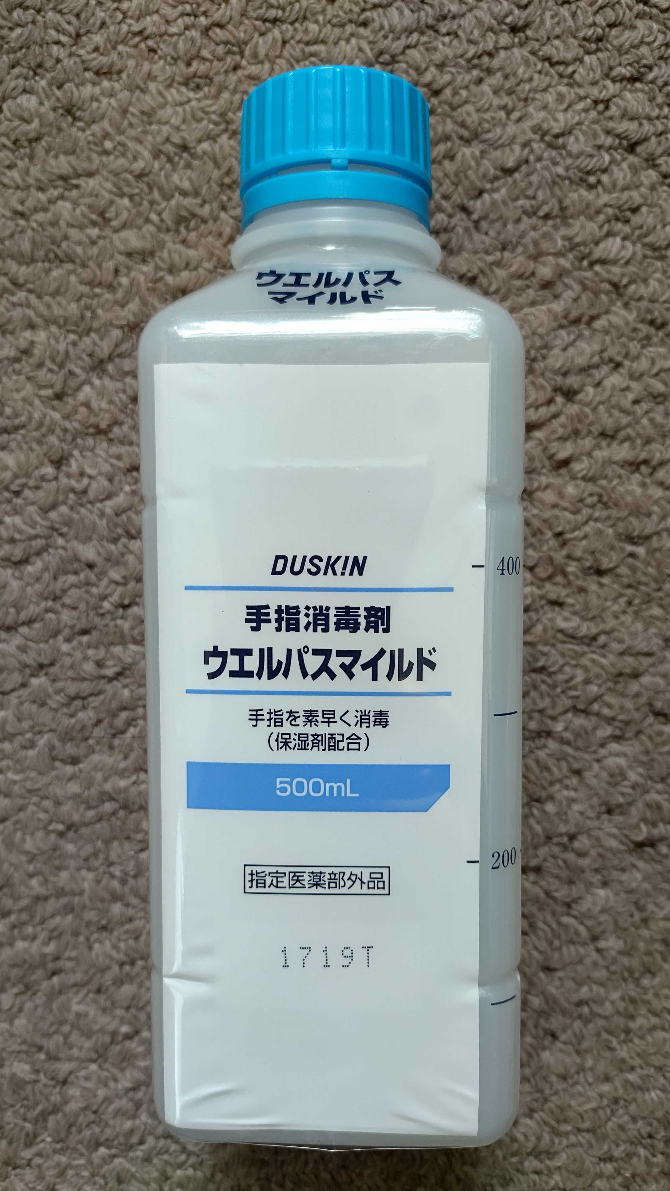 いろいろなものを触った手で食事をするのはどうか?という提案で、食事の際は必ず消毒することになりました。こちらは500mlなので場所を取らずにおけます。アルコールの臭いなども気になりません。