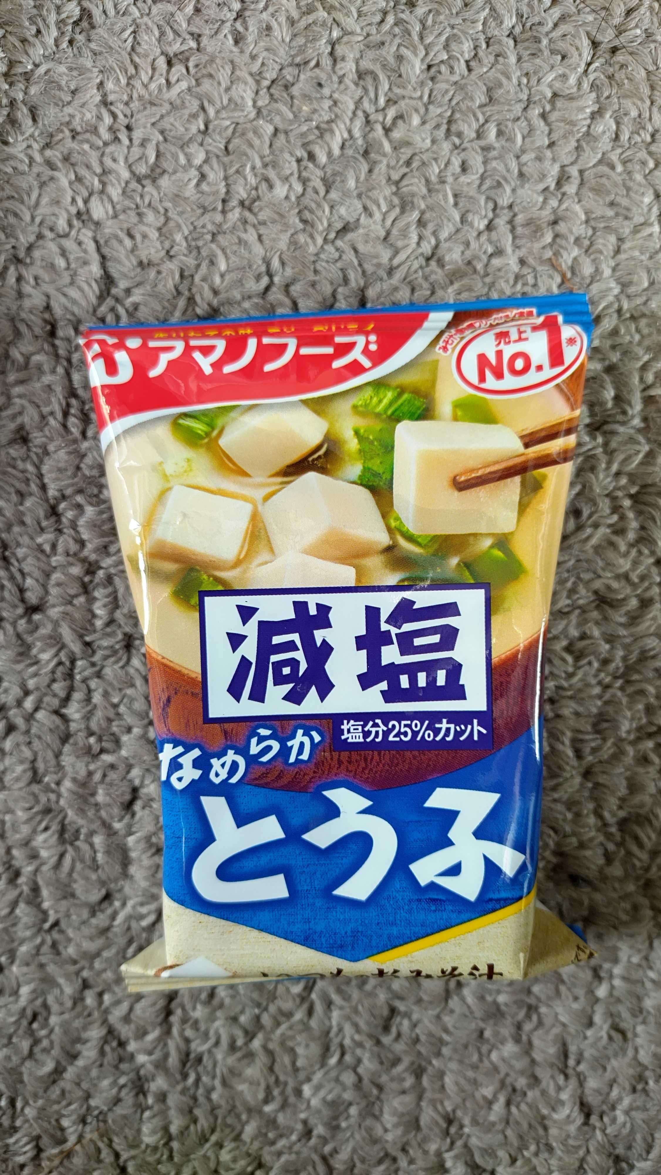 お湯を注ぐとすぐに四角いドライフーズの塊から、つやのいい豆腐が出現します。これで減塩ですので体にも優しく、我が家には欠かせない一品になりました。