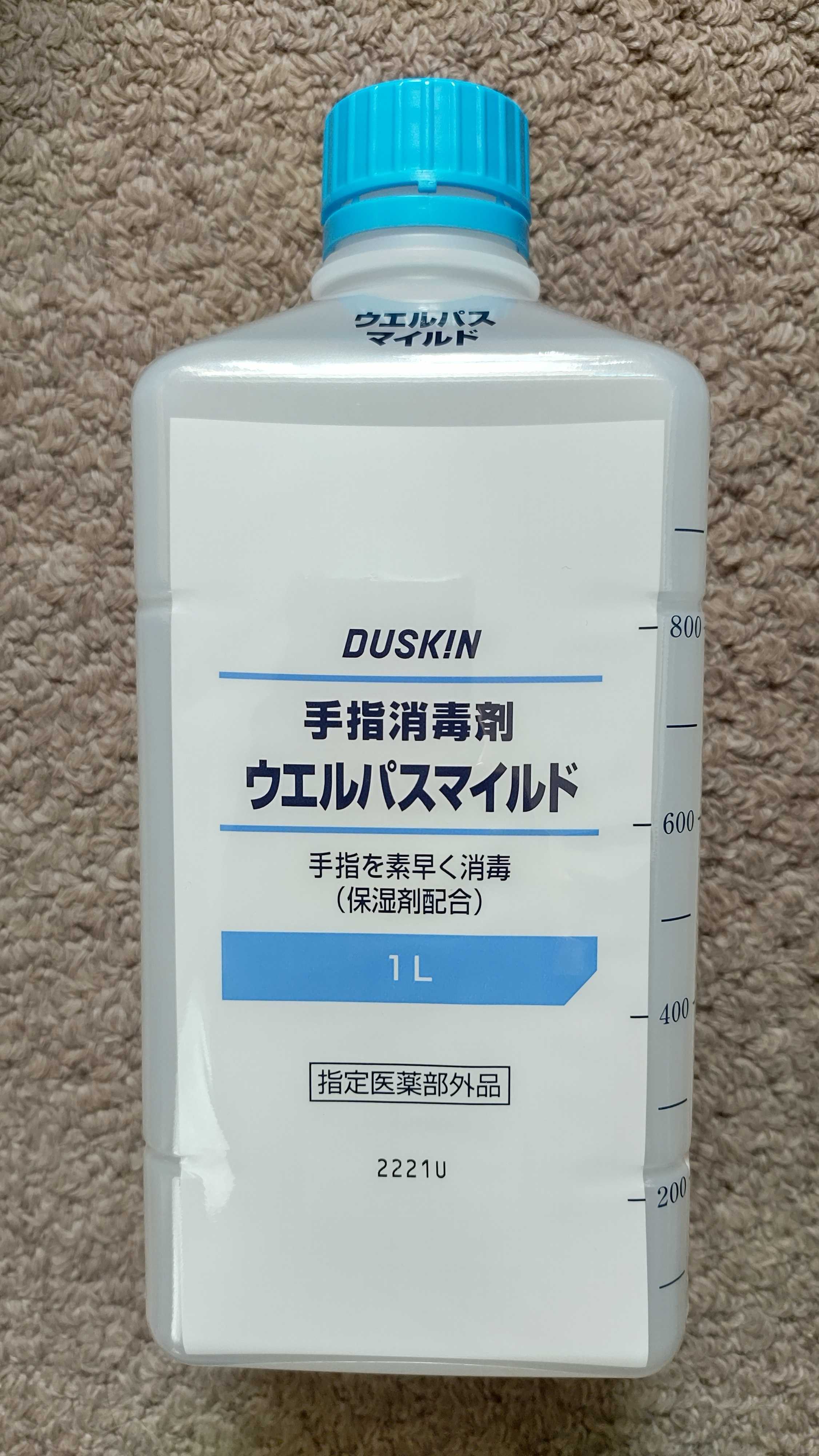 外出帰りには必ずアルコール消毒を行っていますので、玄関にはこの1Lタイプのポンプを置いています。アルコールだけだと手荒れしますので、保湿剤等が混ぜられているので頻繁に使っていますが、手荒れはありません。