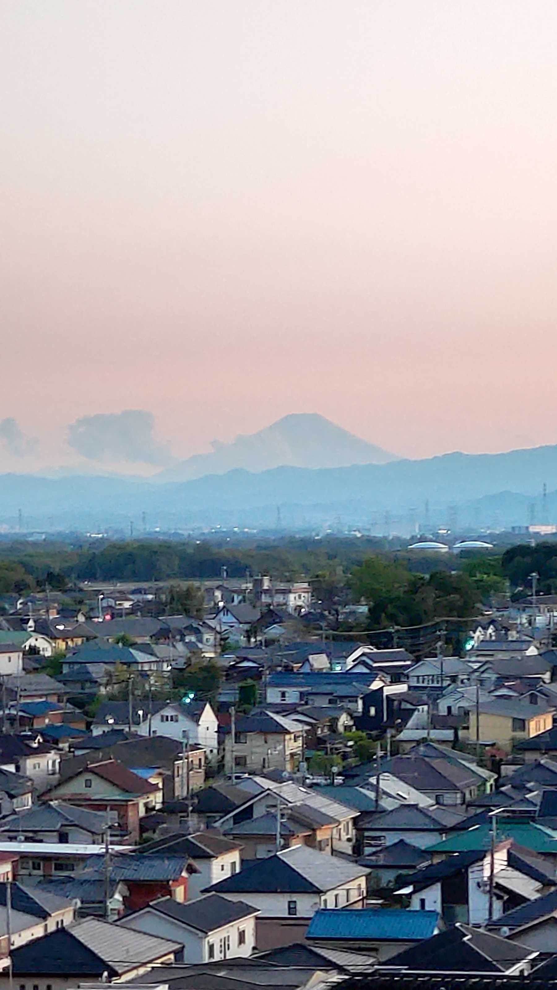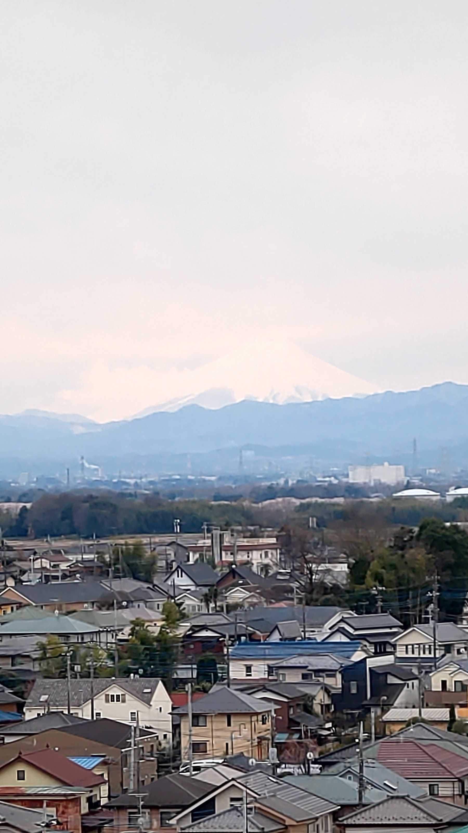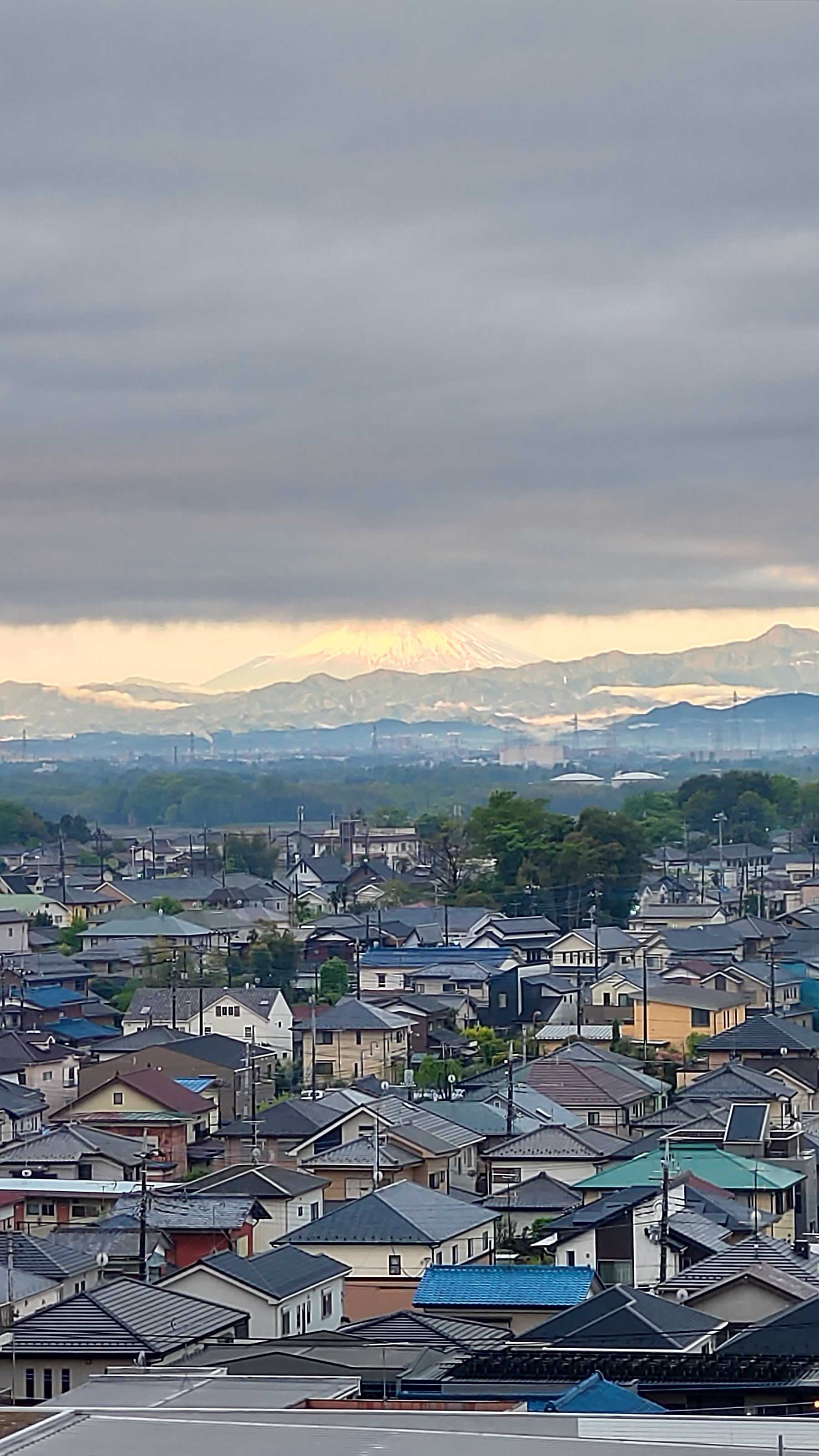 朝起きたら見えないと思っていた雲の合間から富士山が見えました。最初は少しでしたが、数分後にしっかり見えました。