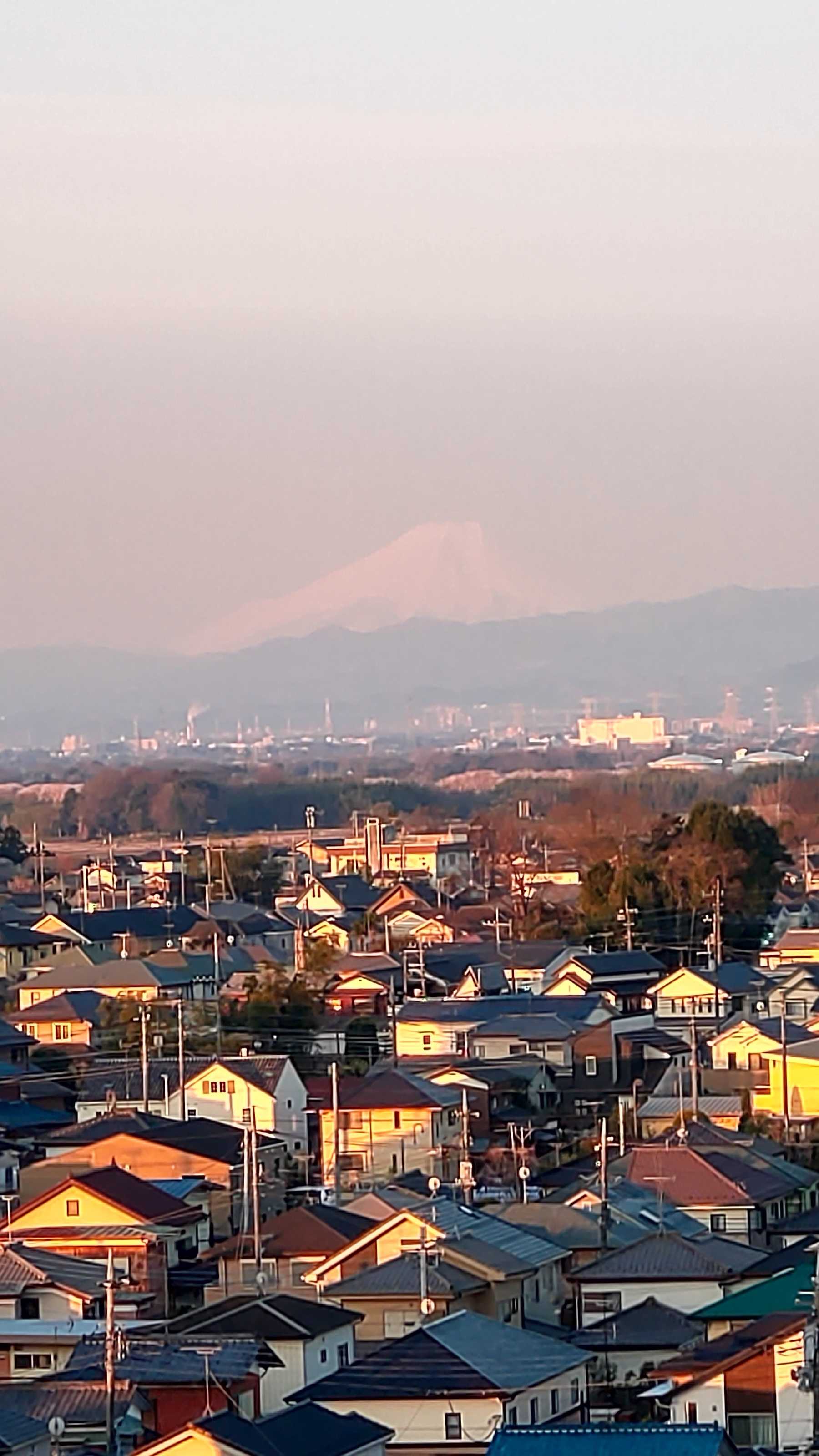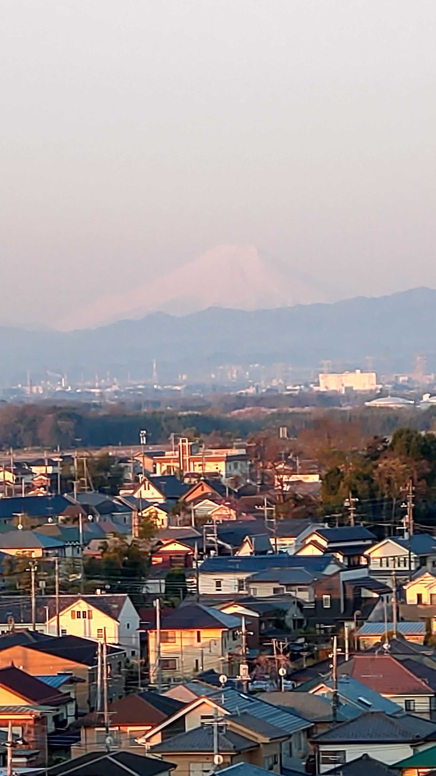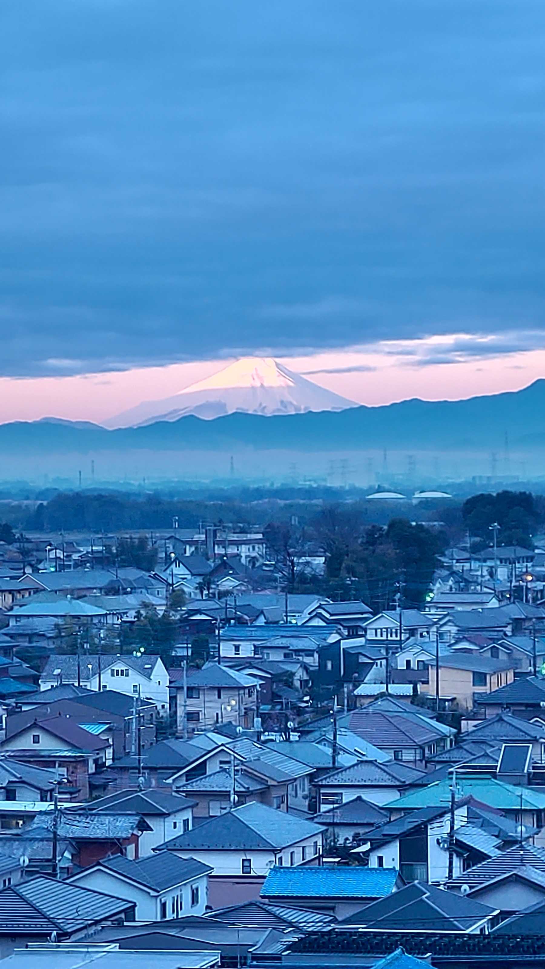朝起きたら見えないと思っていた雲の合間から富士山が見えました。最初は少しでしたが、数分後にしっかり見えました。