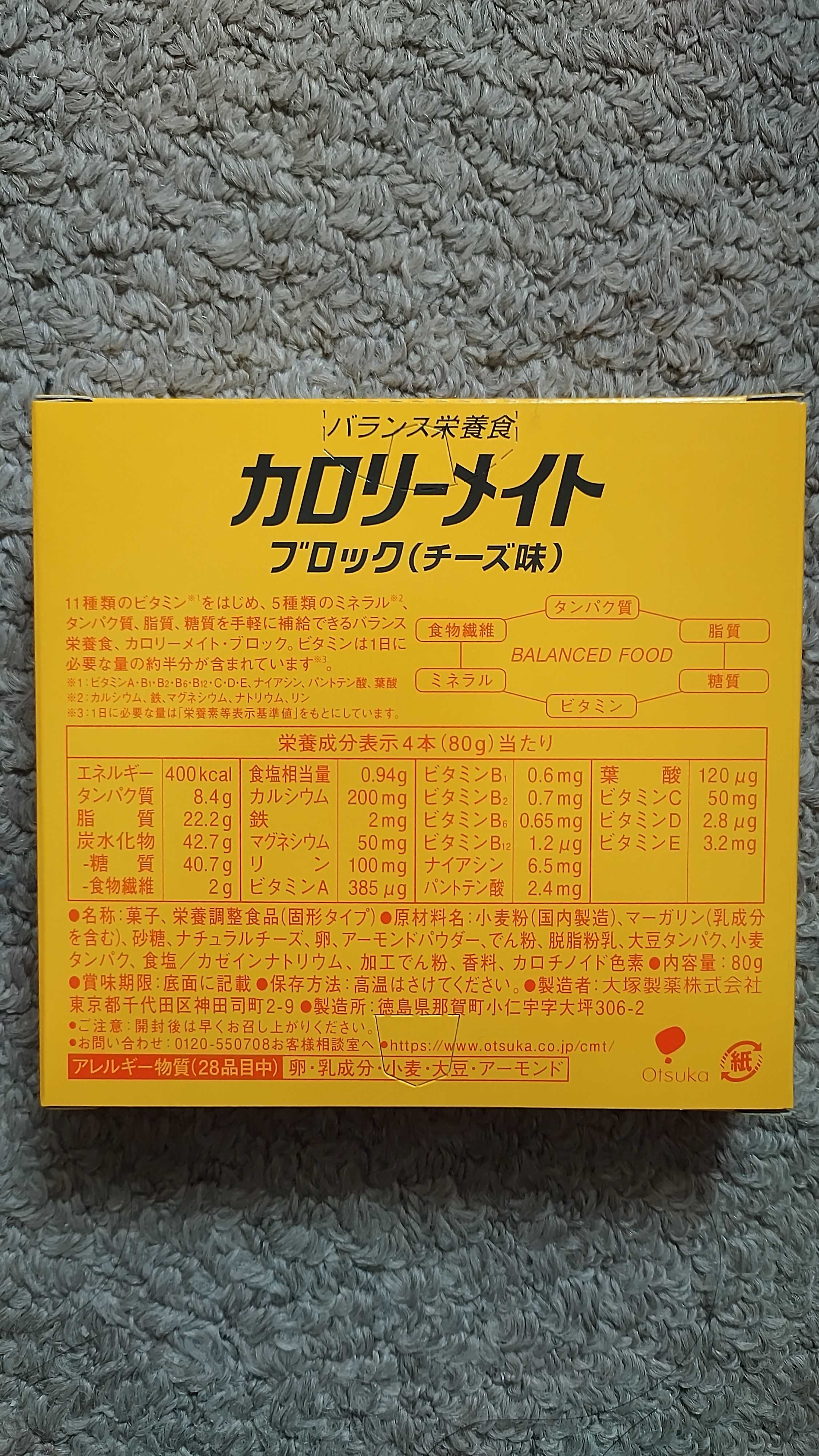 もうかなりの年数、昼のカロリーを減らすために、カロリーメイトを食べています。甘めの味よりチーズ味のほうが、野菜ジュースやスムージーと合うと思います。食べ終わった後にコーヒーを飲むのが仕事をするときの決まりです。お陰様で体重は落ち着いています。