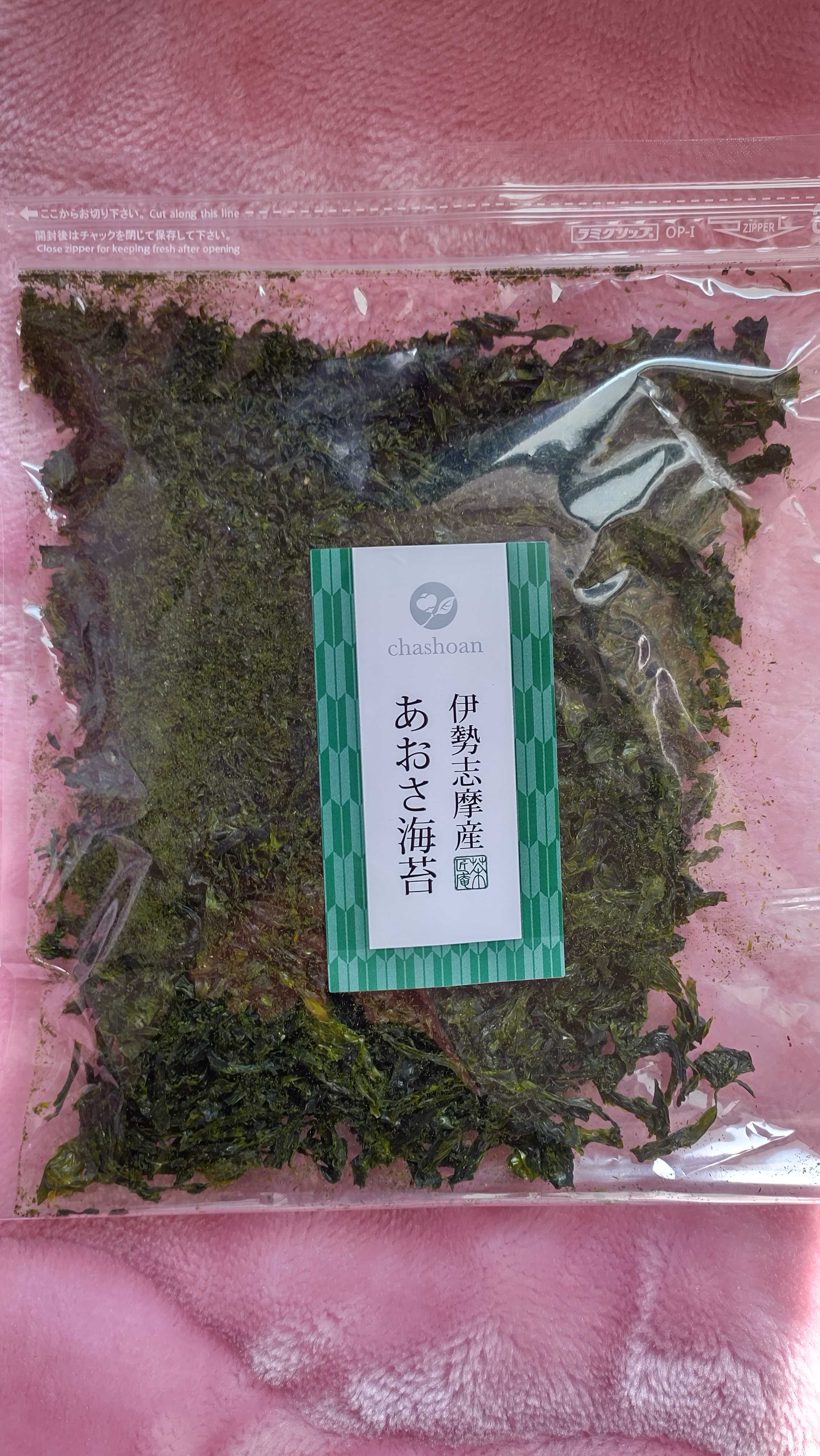 海の香りと味を感じさせてくれるアオサのりです。味噌汁や麺類の具として使うととてもいい味になります。なかなか出かけられないので、この味で磯の気分を味わっています。