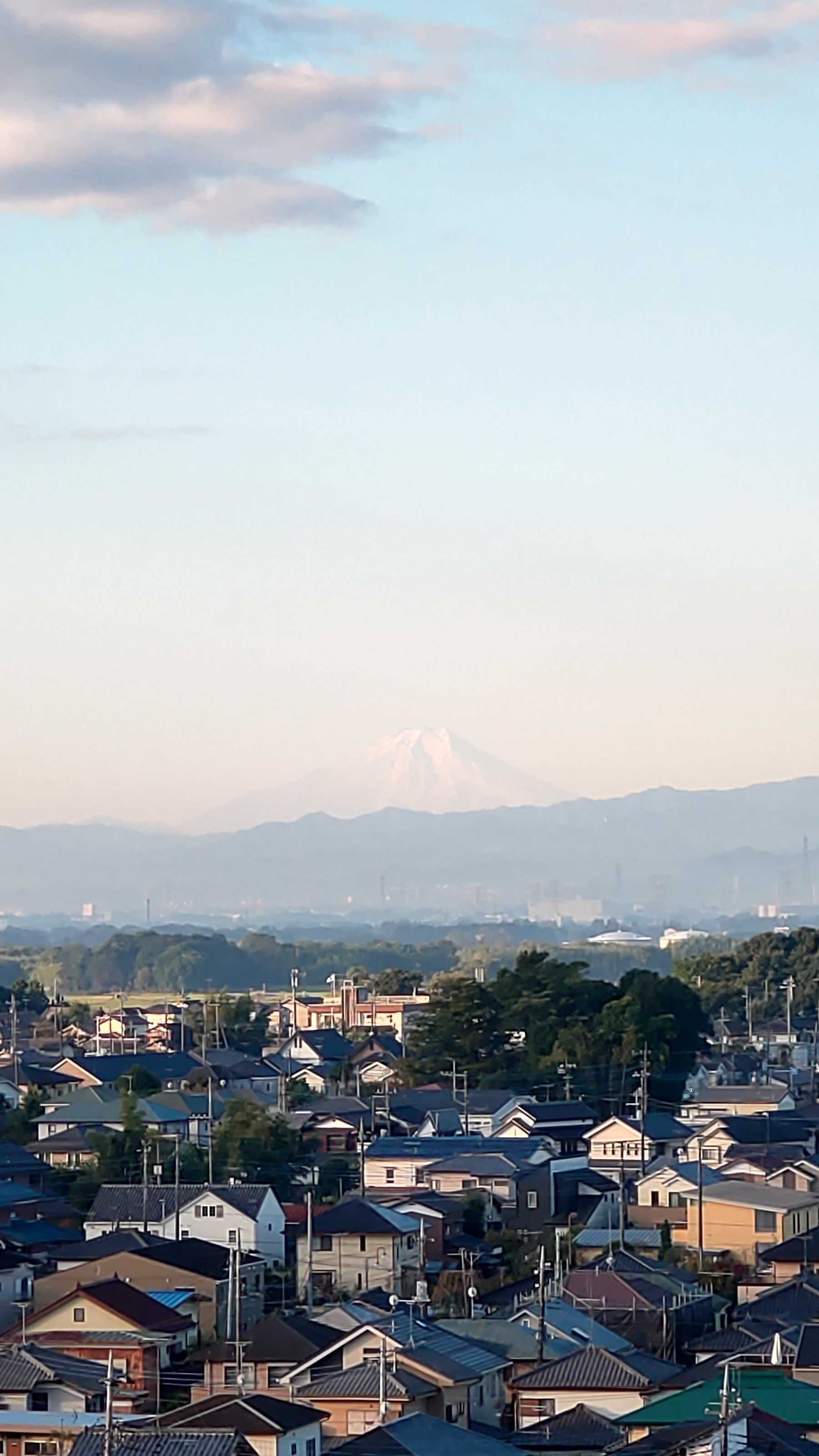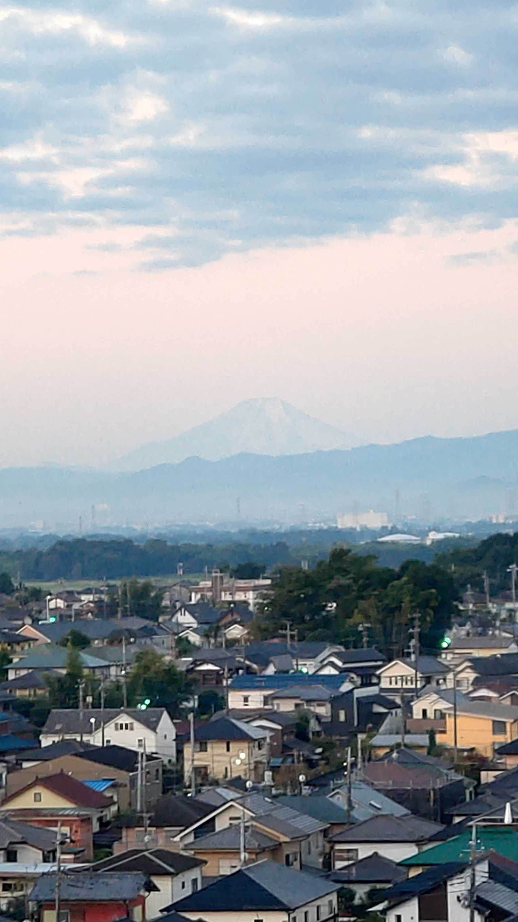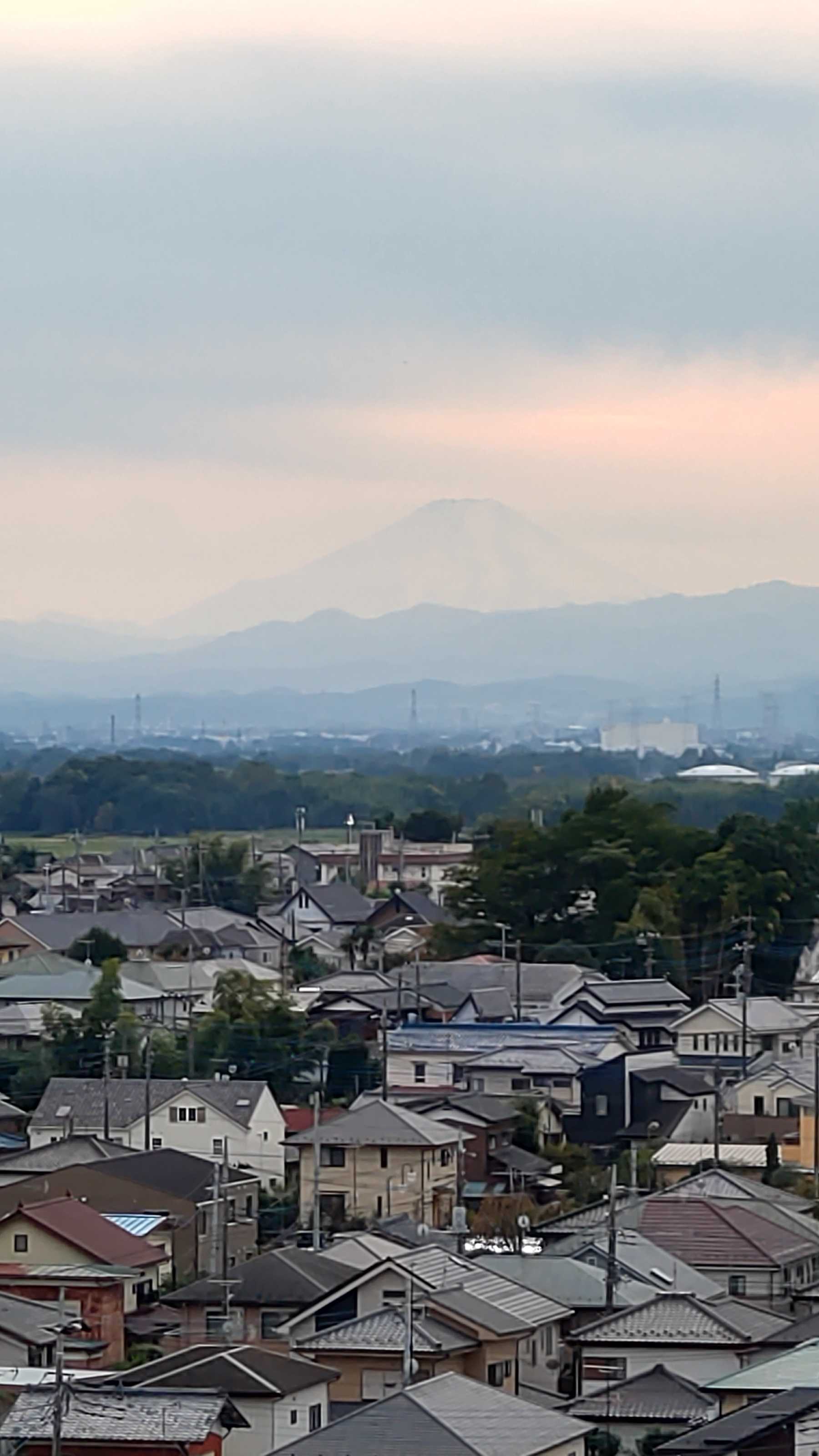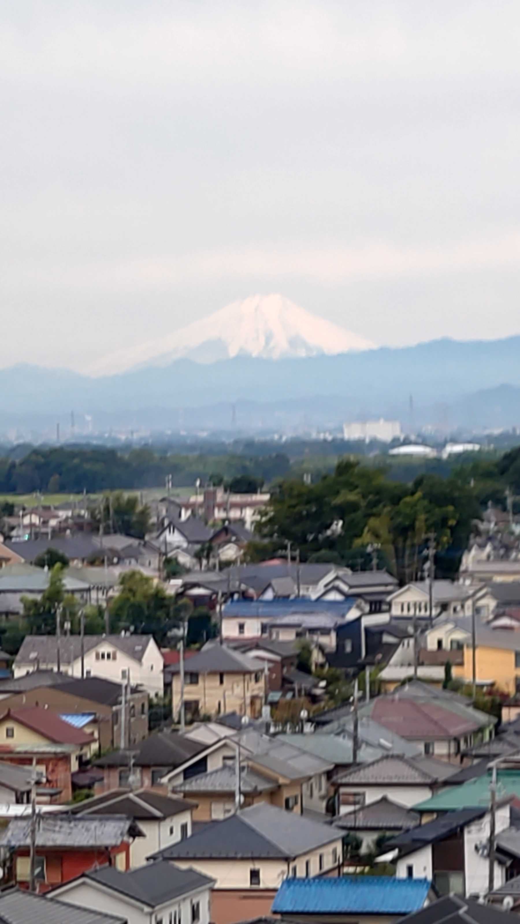 あわてて撮ったので写り悪いのですが、16時少し前雪化粧した🗻が見えました。