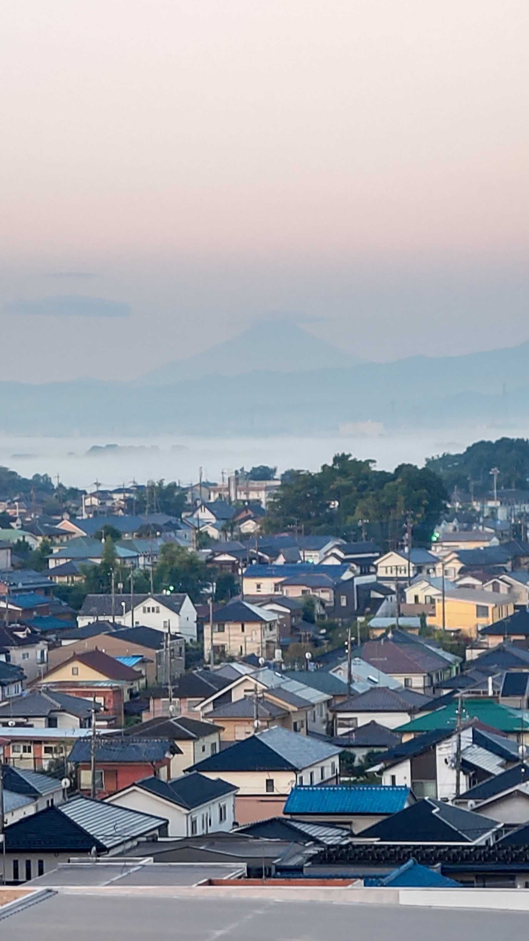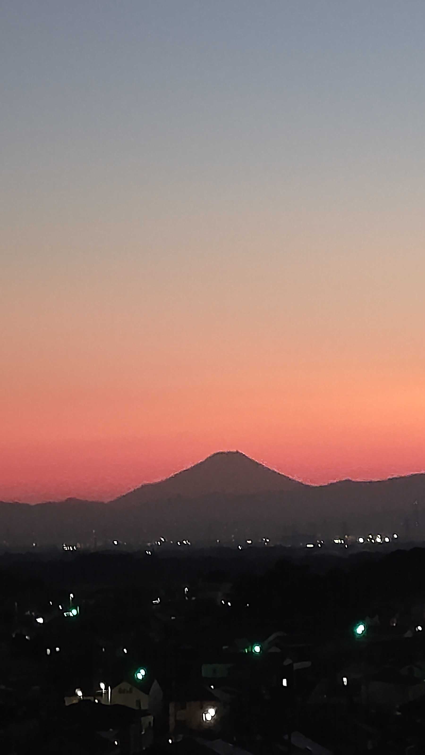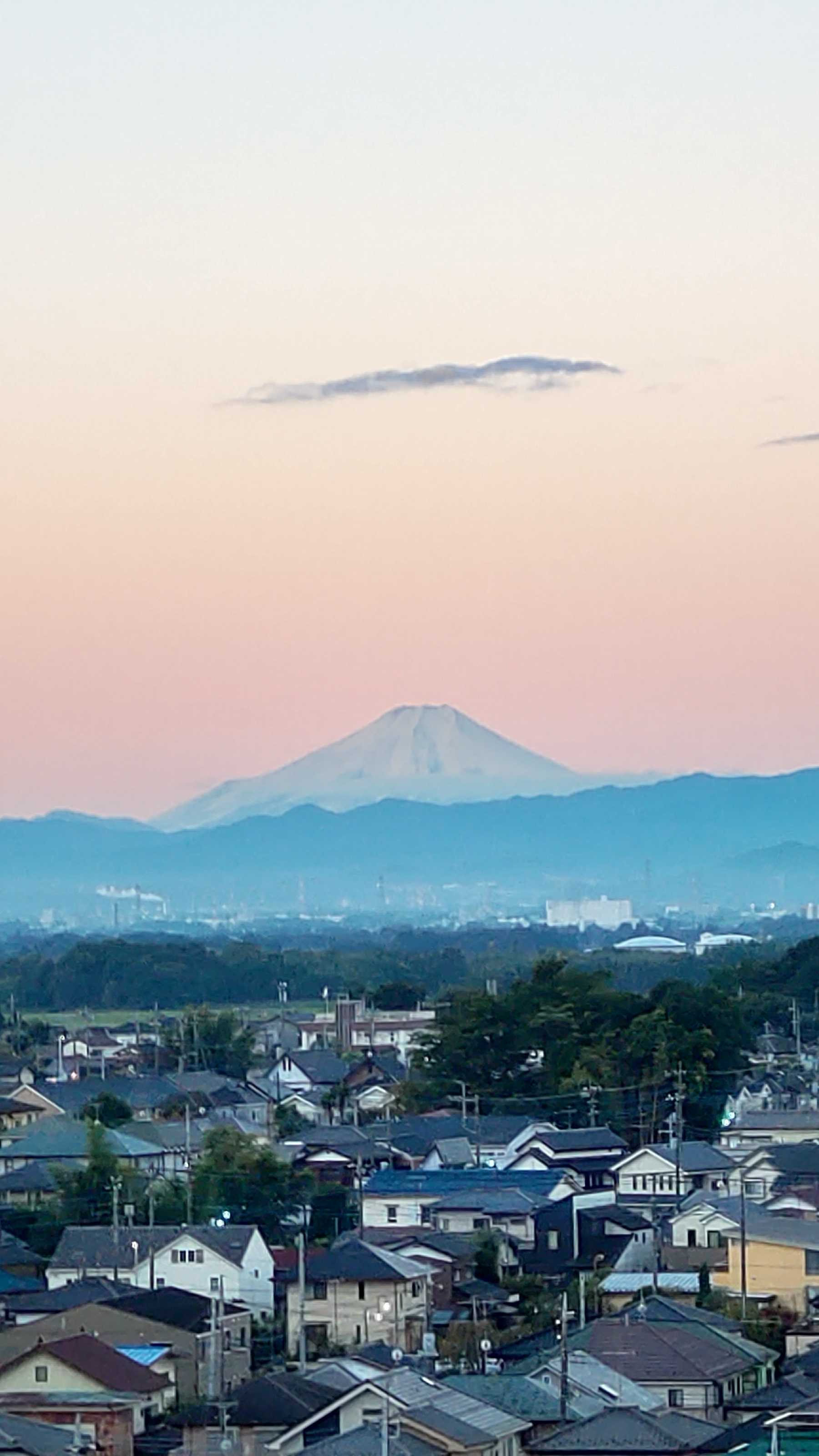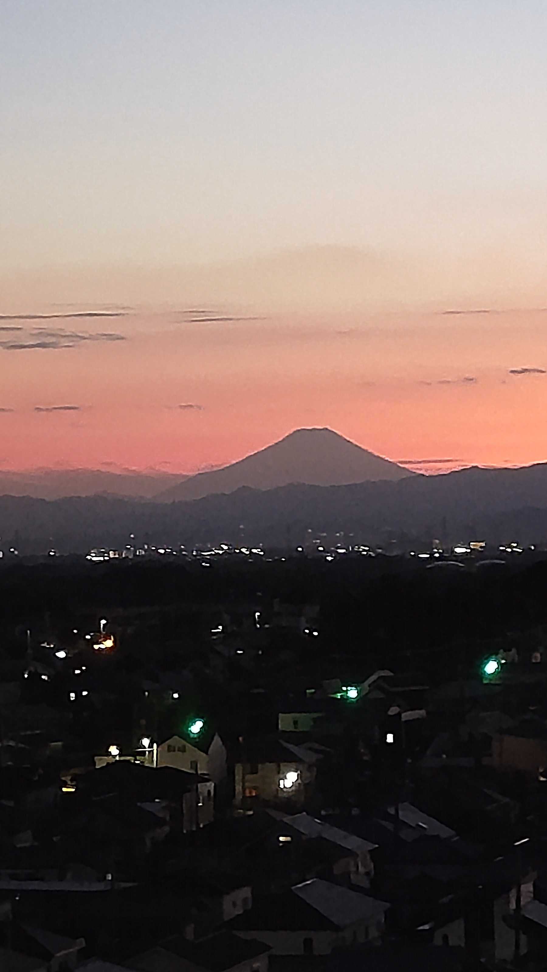 おはようございます!!本日も秋晴れです。日の出前の富士山です。昨日よりは少しもやがかかっています。