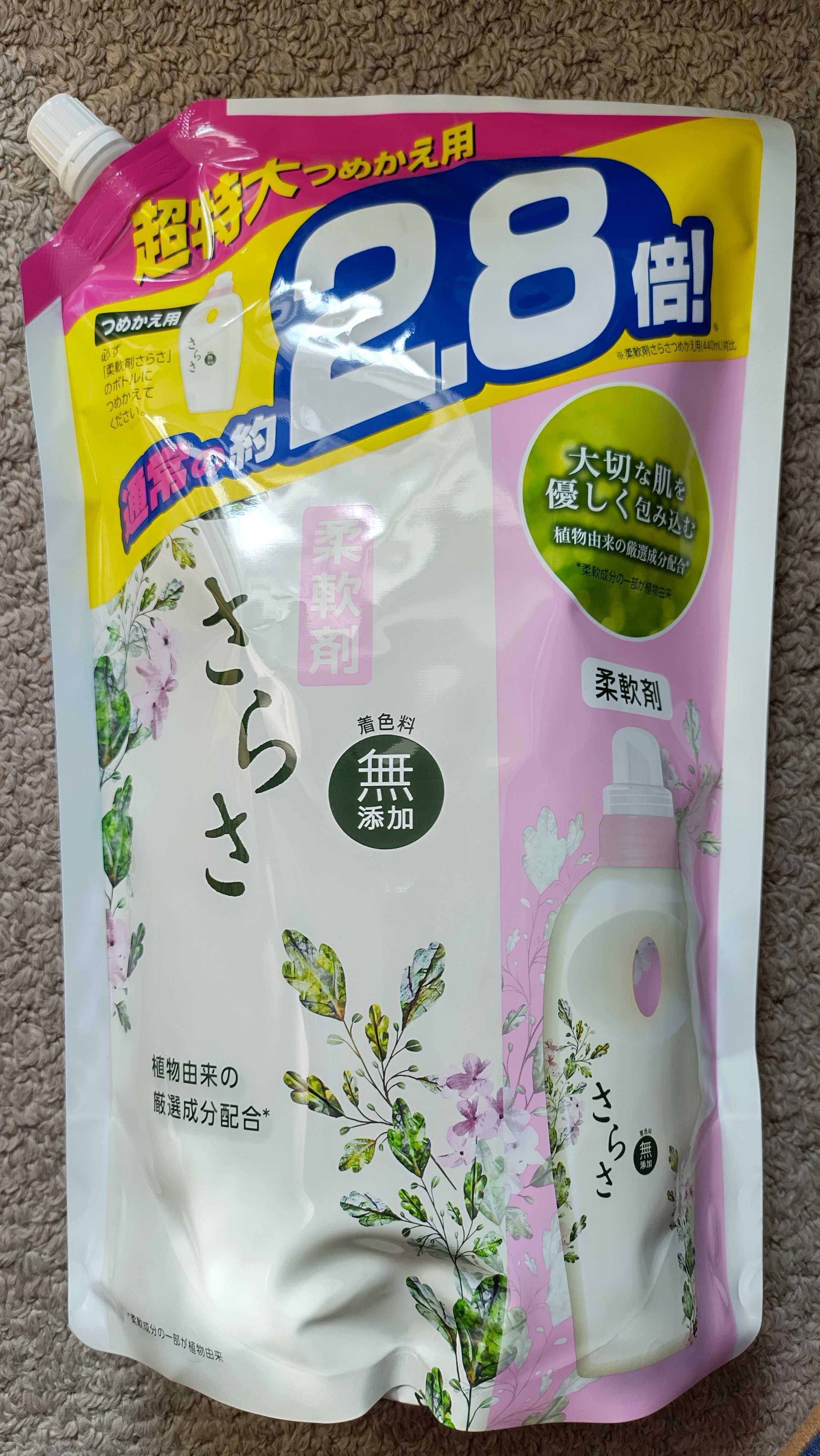 衣類は綿製品が多いので柔軟剤を使います。肌着には微香で低刺激なので助かっています。香料が強いと鼻孔を刺激するので、くしゃみが出るので微香、低刺激タイプを使っています。この詰め替え用は2.8倍と量も多いので助かります。