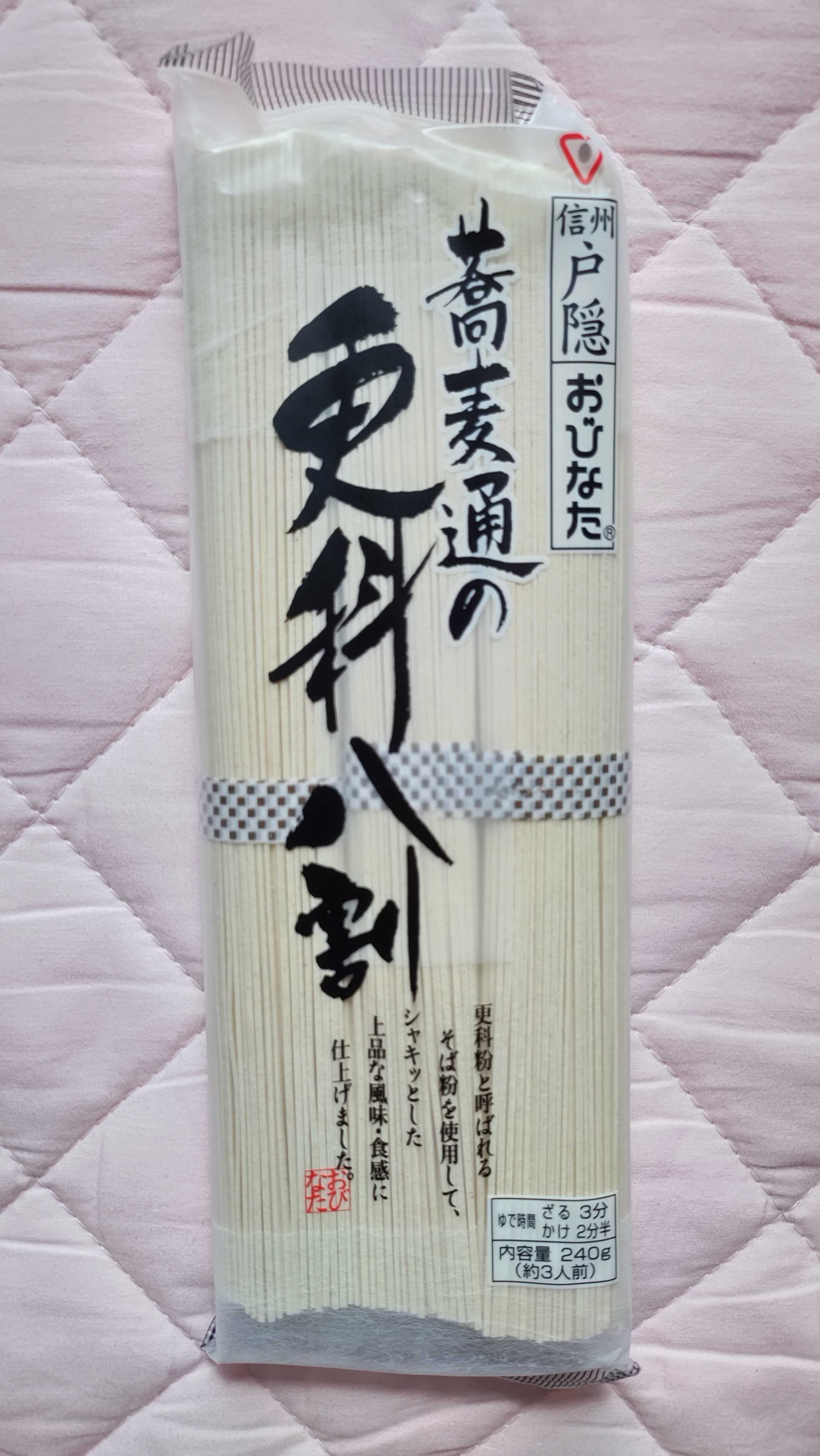 乾麺の八割蕎麦です。250gで一袋なので、我が家は二人前です。小食の方は3人前ありそうです。こちらは5分湯がきます。製粉所により様々な味になりますので、現地で生蕎麦を食べてみたくなりました。