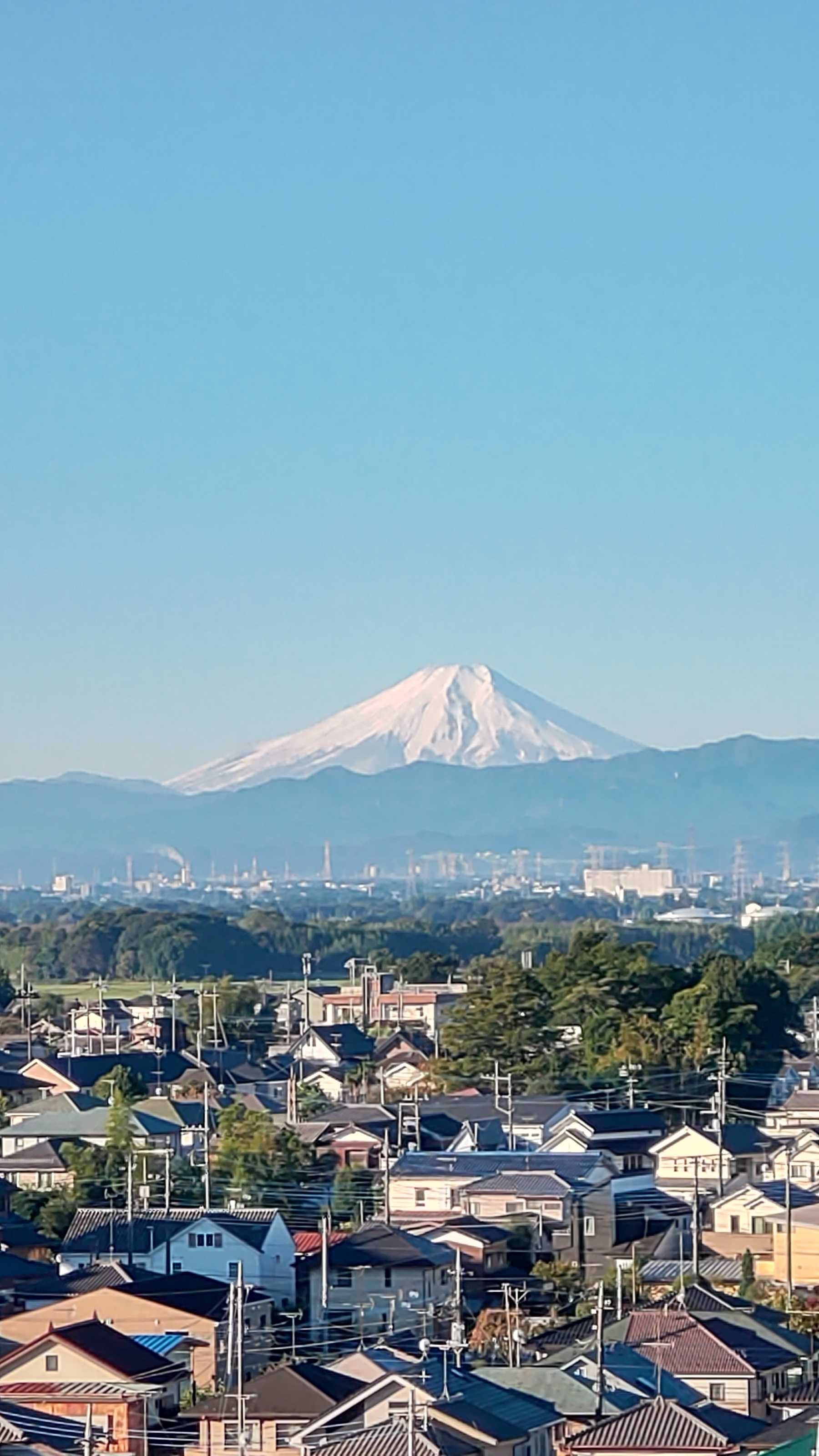雲一つない秋晴れの富士山をどうぞ。こちらは東側から撮っていますが、雪は見えません。静岡側や山梨側からは如何でしょうか?