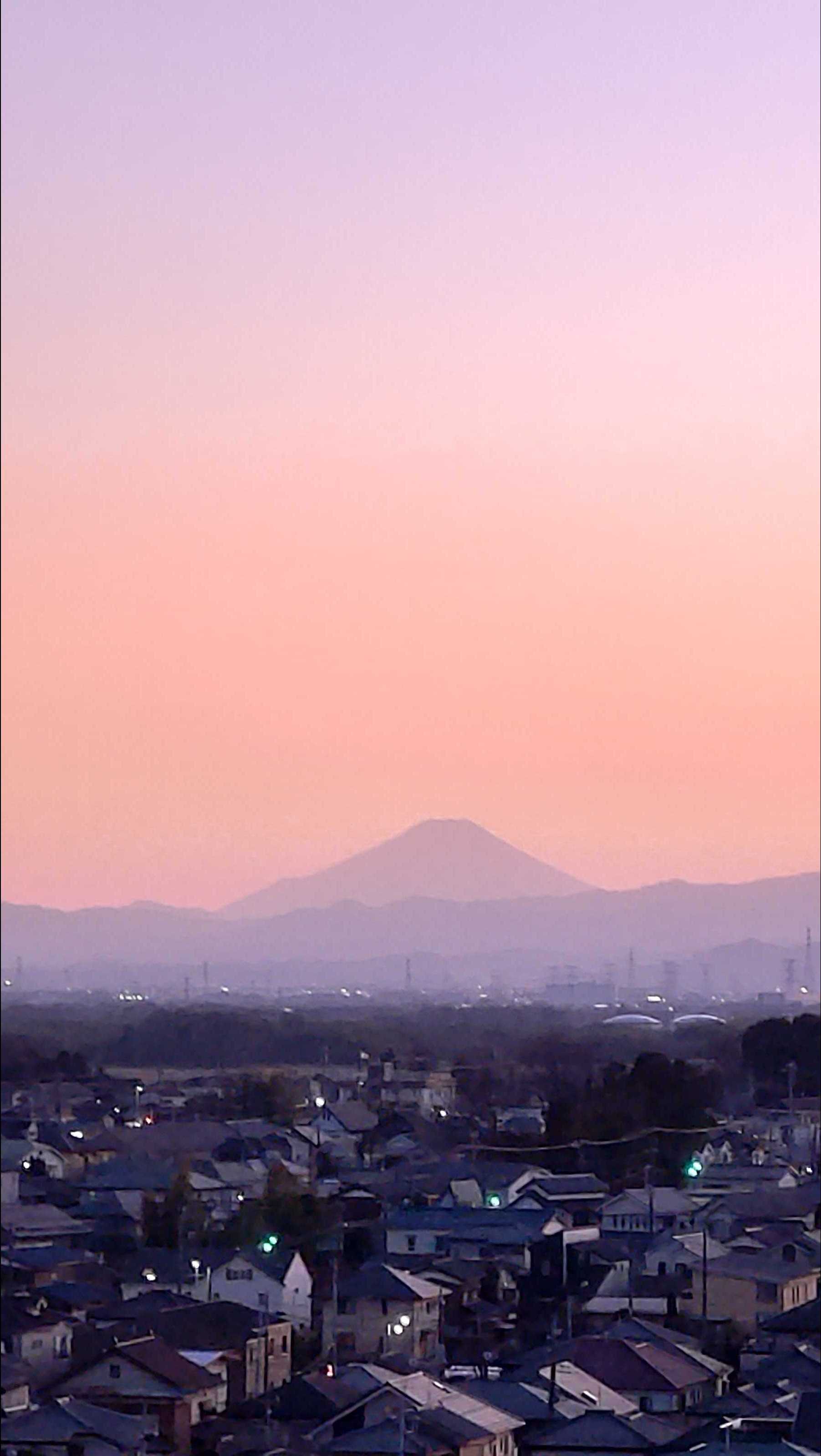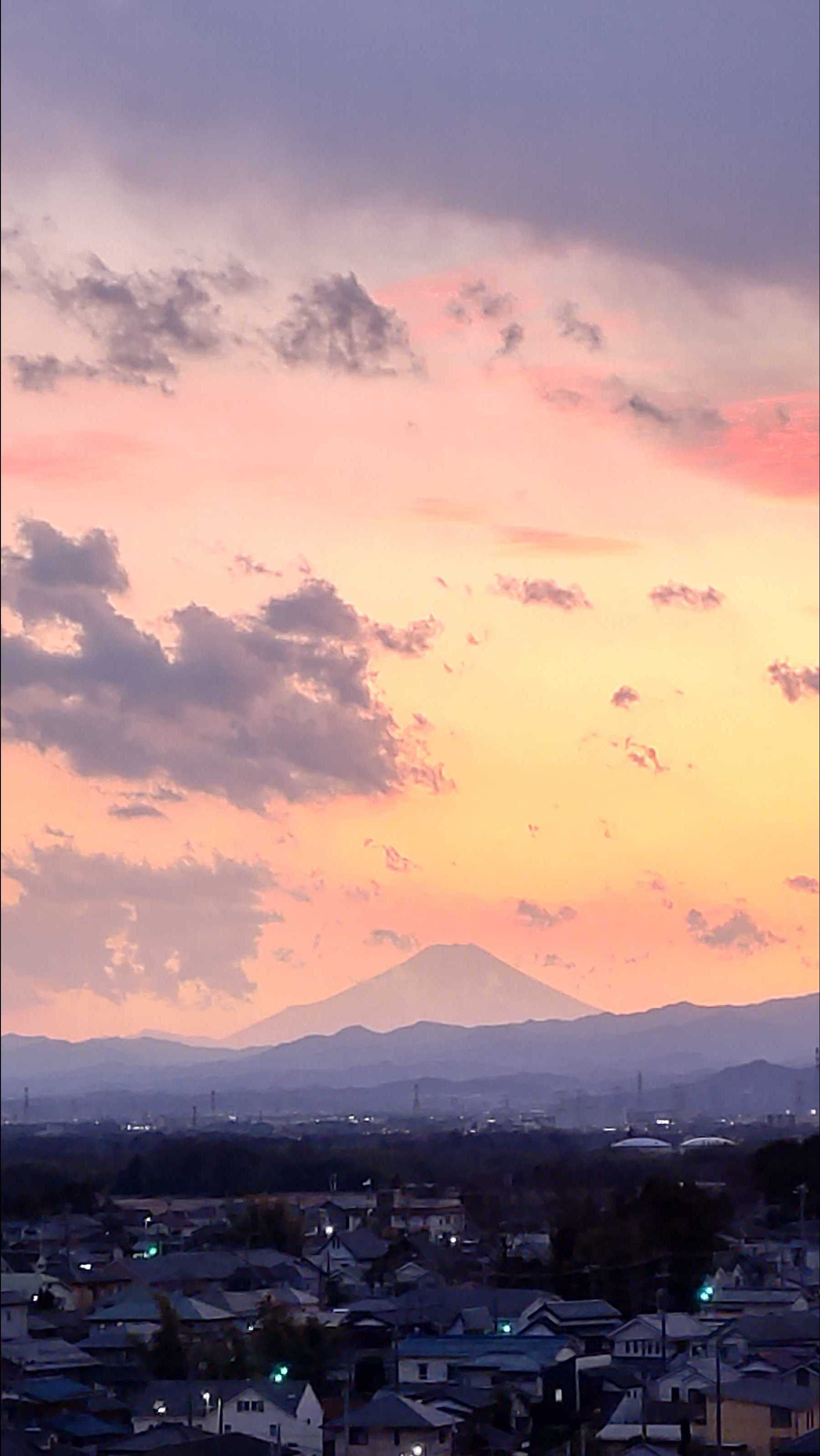 日中は雲が出て🗻はお隠れになっていましたが、夕暮れ時になってお出ましとなりました。本日もご覧いただきありがとうございました。まだまだ寒く、花粉も飛んできますので、お気を付けください。