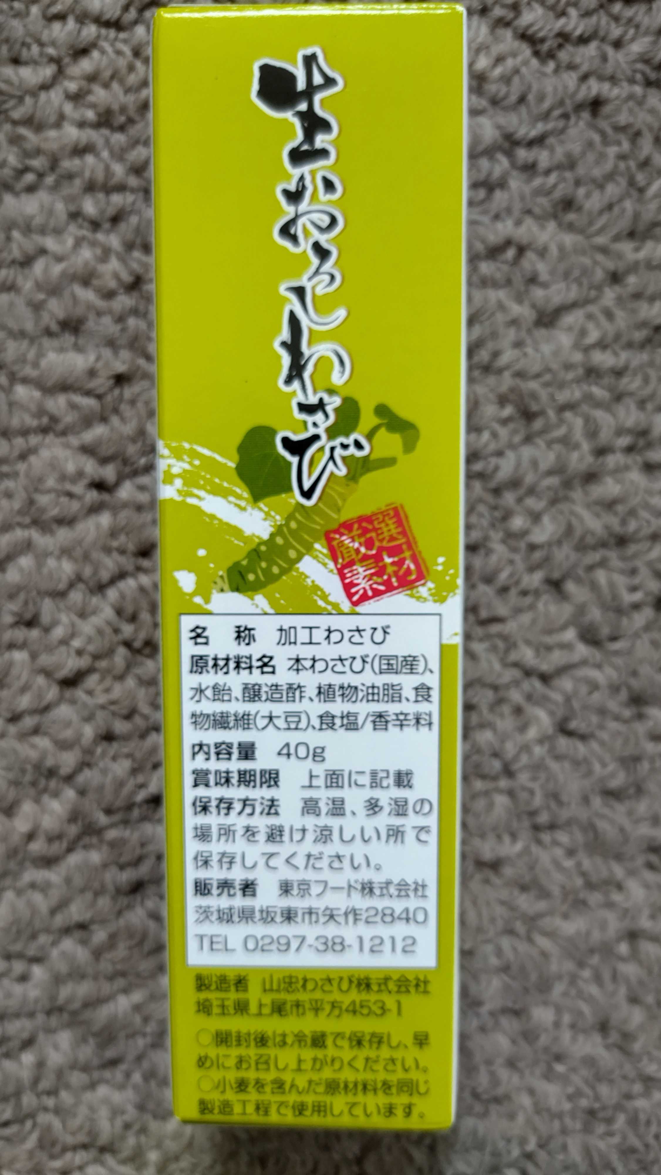 国産材料を使っているので安心です。結構ワサビしょうゆを使うので毎月買っているような状況です。着色料等は使っていないので色は鮮やかではありませんが、本来の色でしっかりとした味でとても気に入っています。
