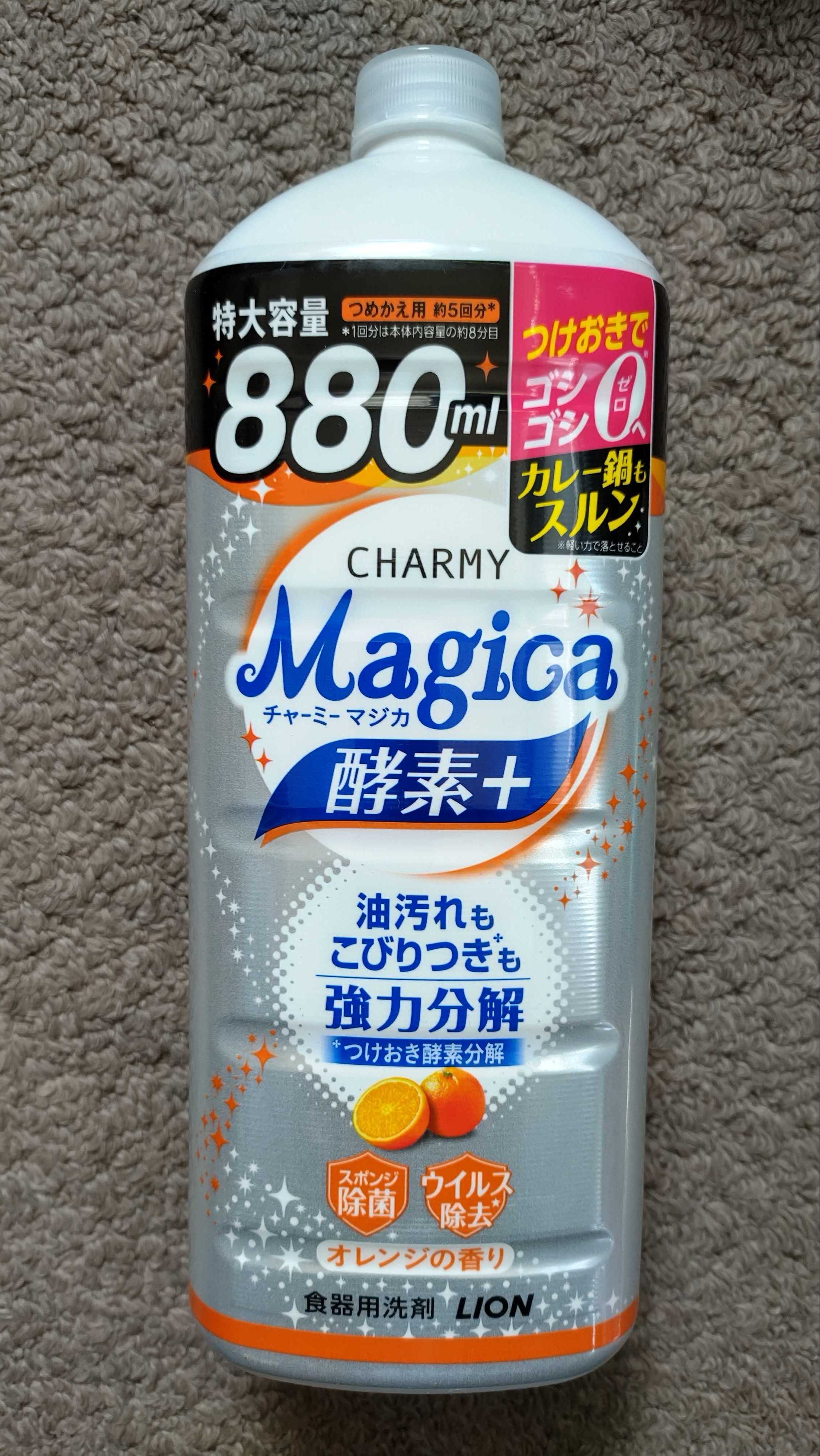 食器洗剤の詰め替え用で880mlと大容量です。油落ちや洗った後のスッキリ感が気に入っています。在庫管理を忘れないようにしておかないといけない一品です。
