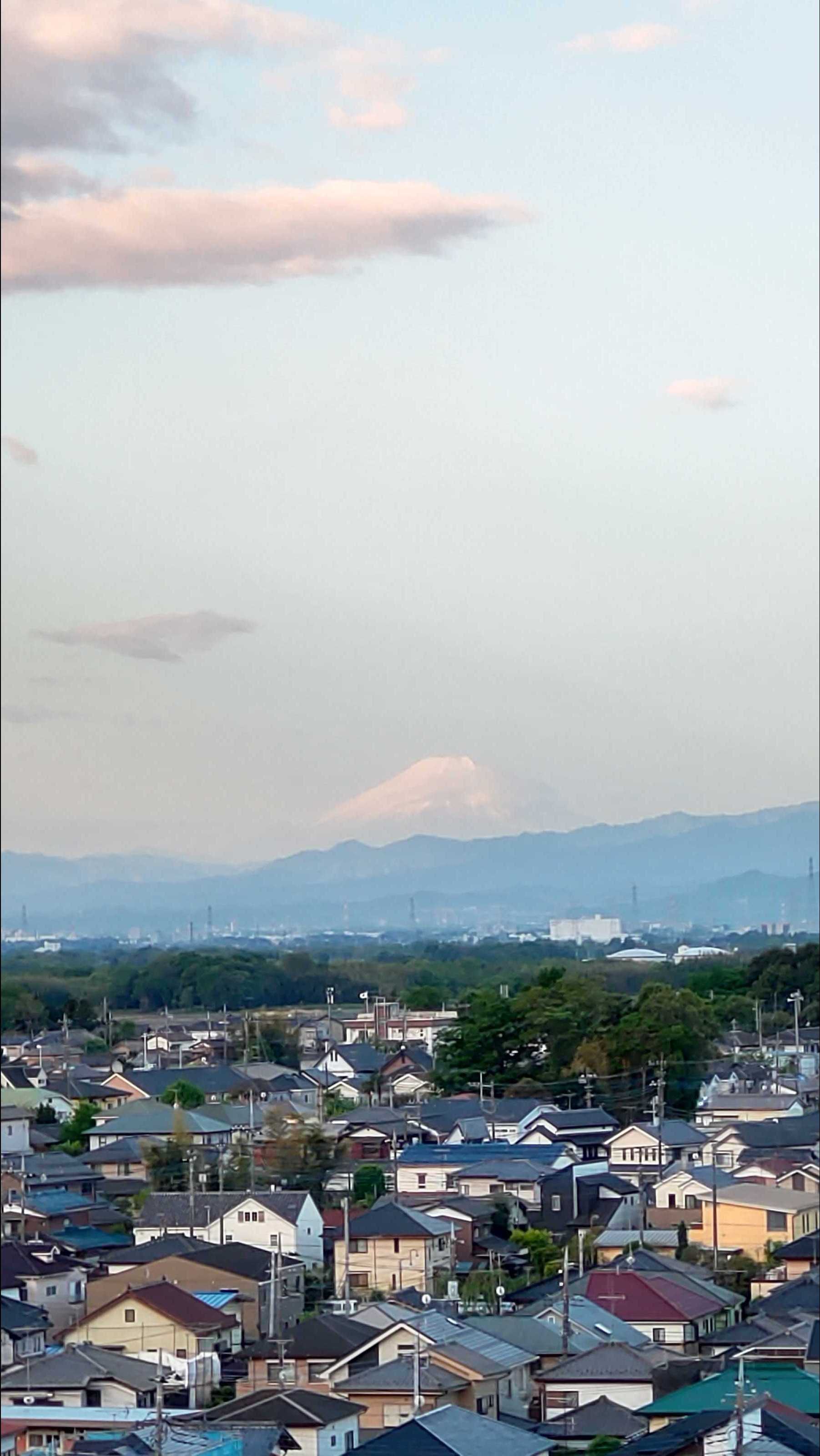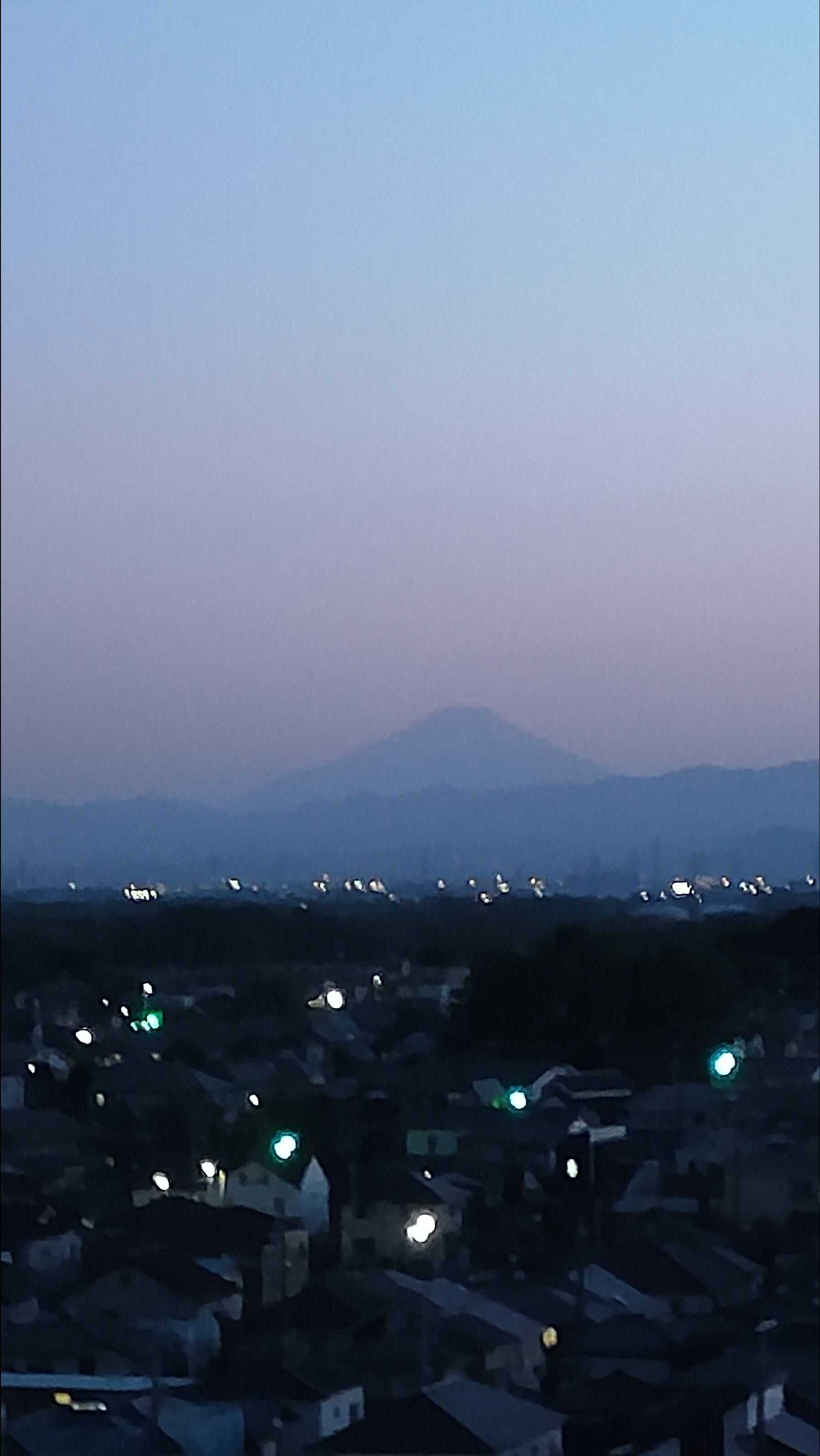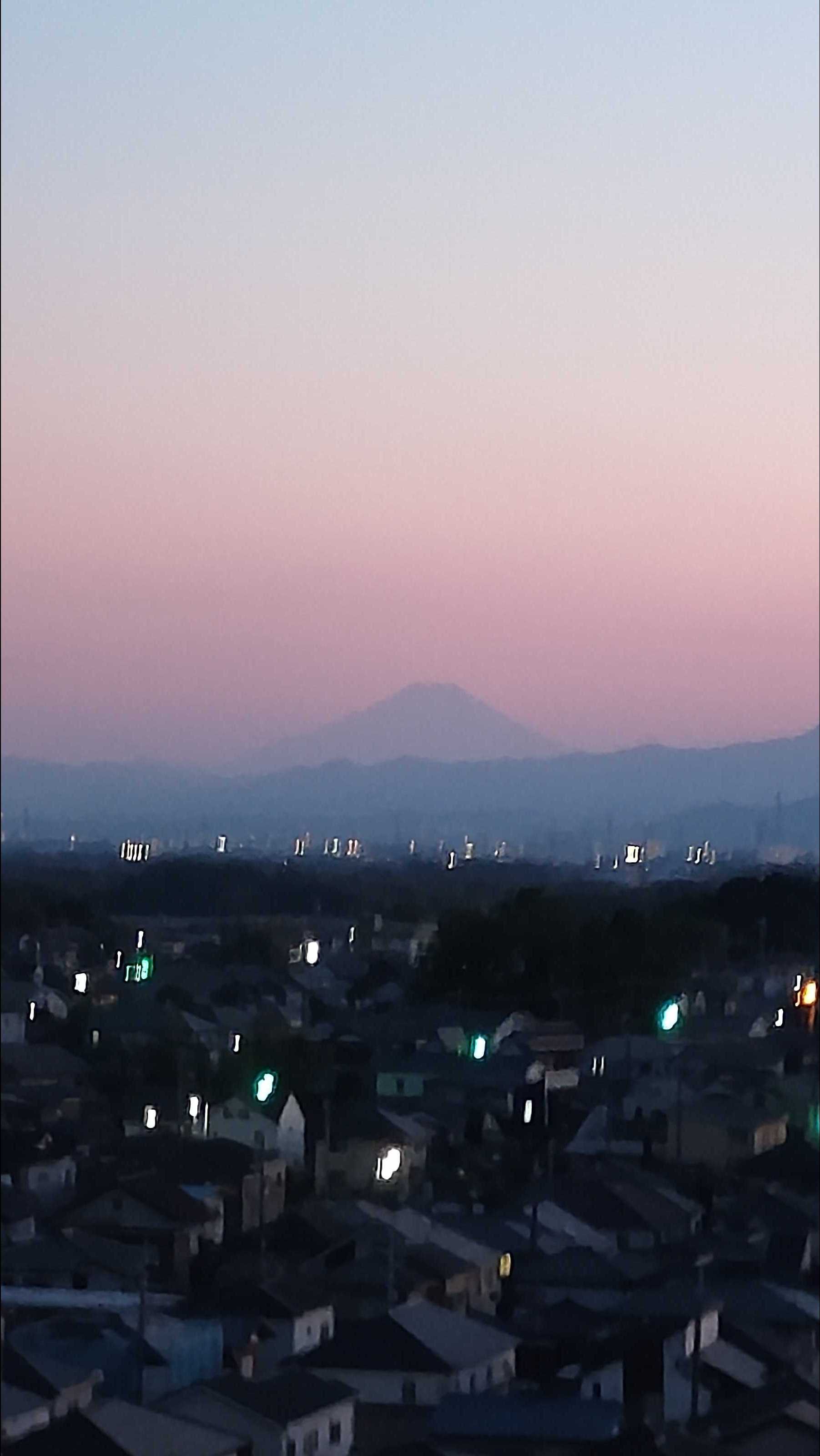 本日は変わりやすい天気でしたが、夕暮れ時は晴れて🗻が見えました。18:37撮影です。日が長くなりました。