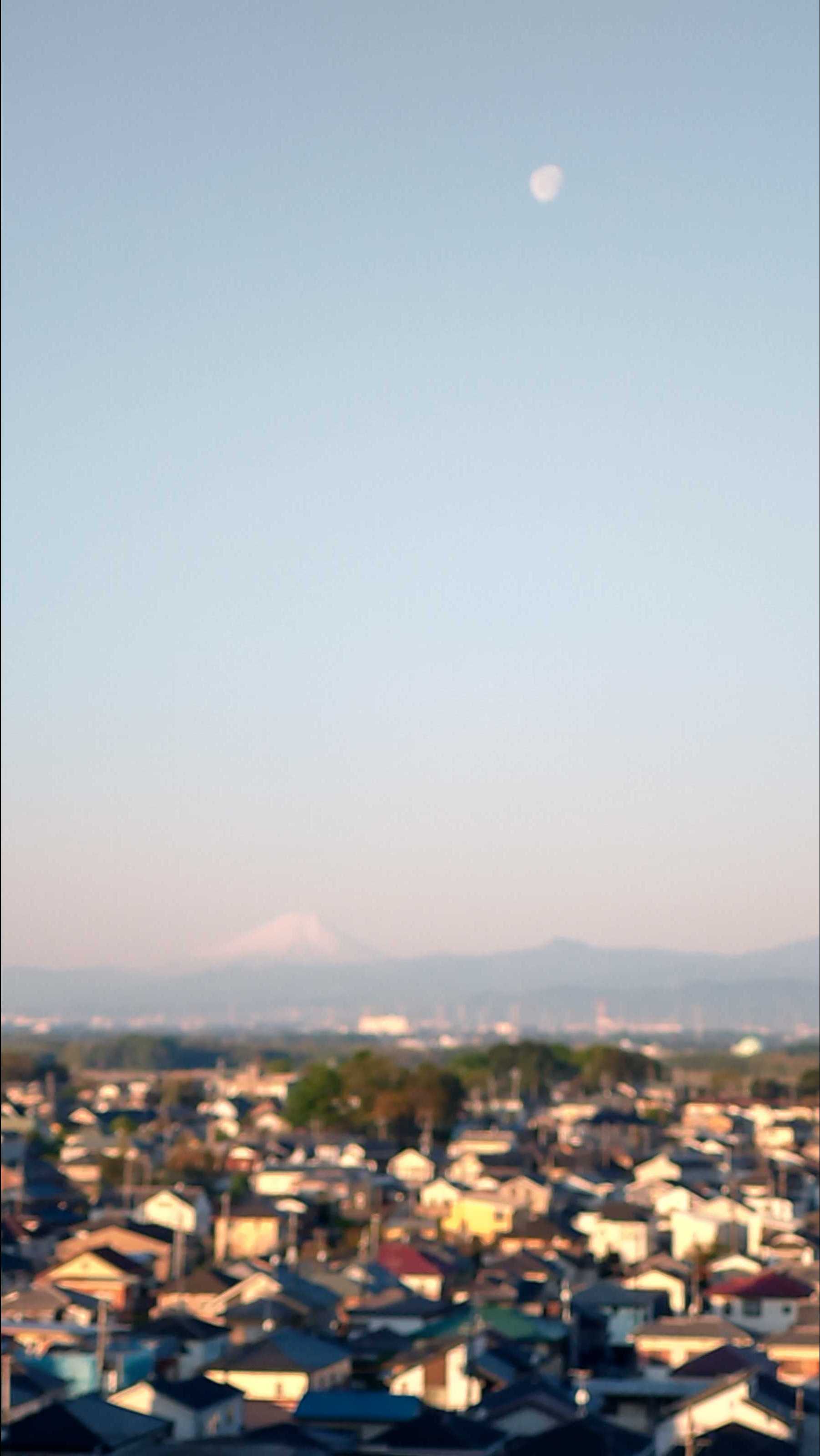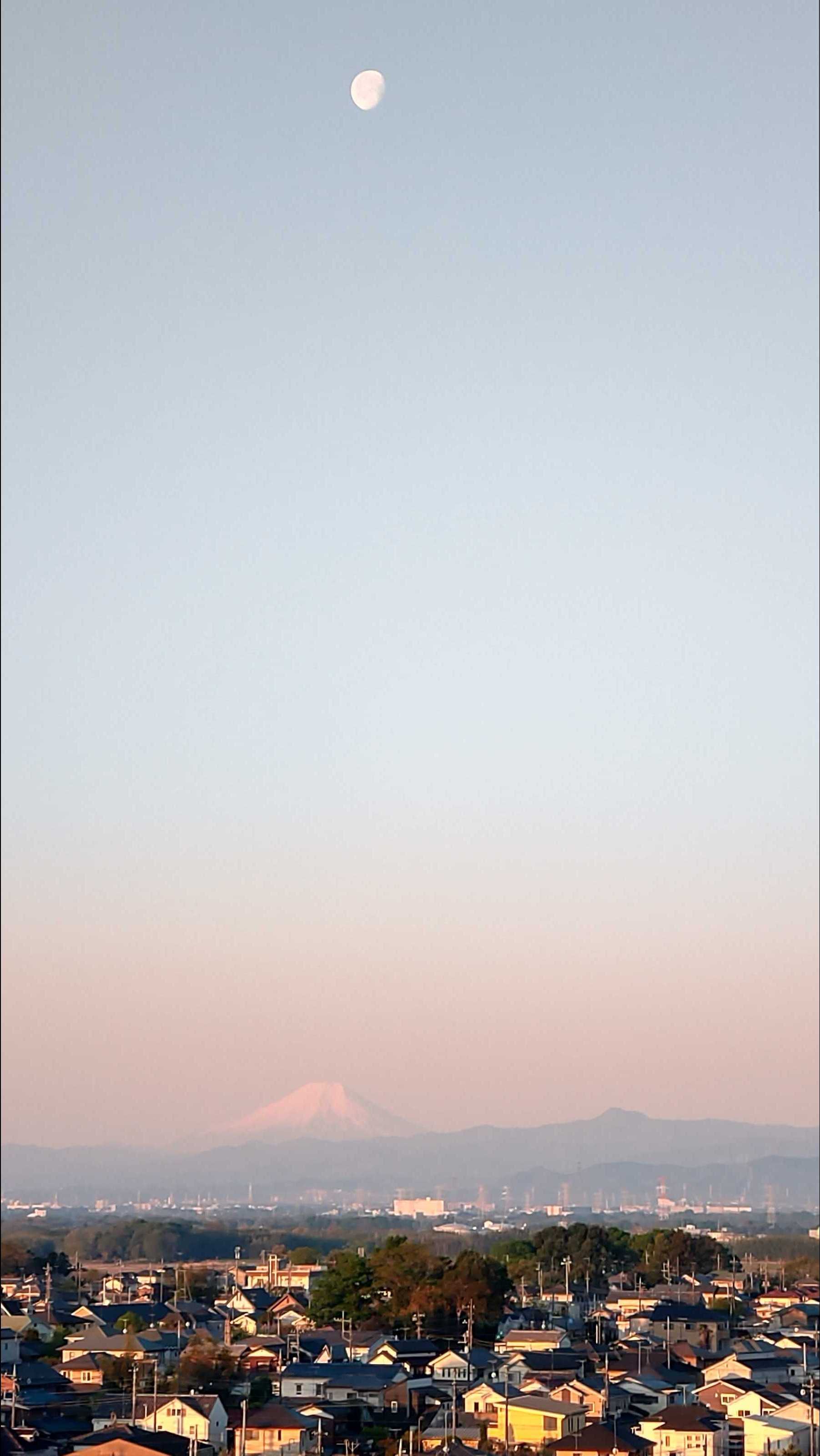 5:34の月と🗻朝は冷え込んだので昨日よりはっきり見えています。