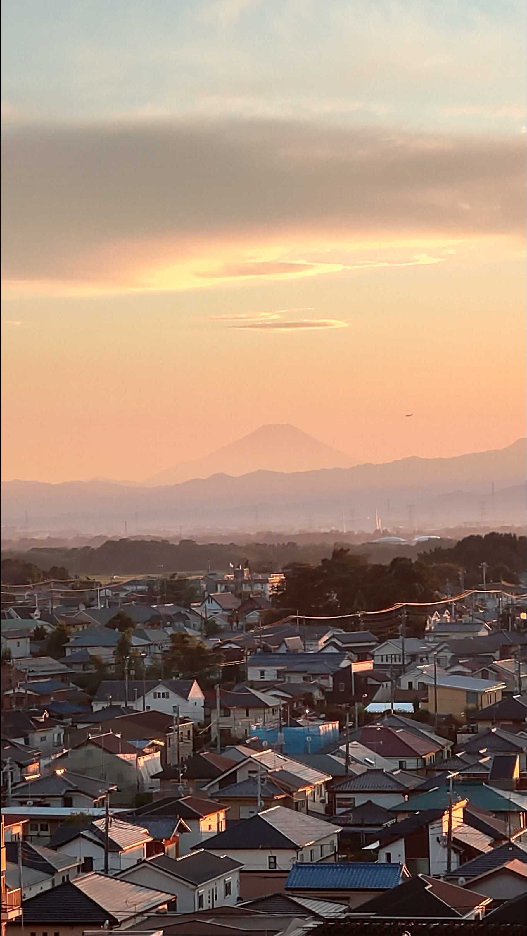 5:56日の出の🗻です。日の出の時間がだんだん遅くなってきました。今日も秋晴れの一日が始まります。