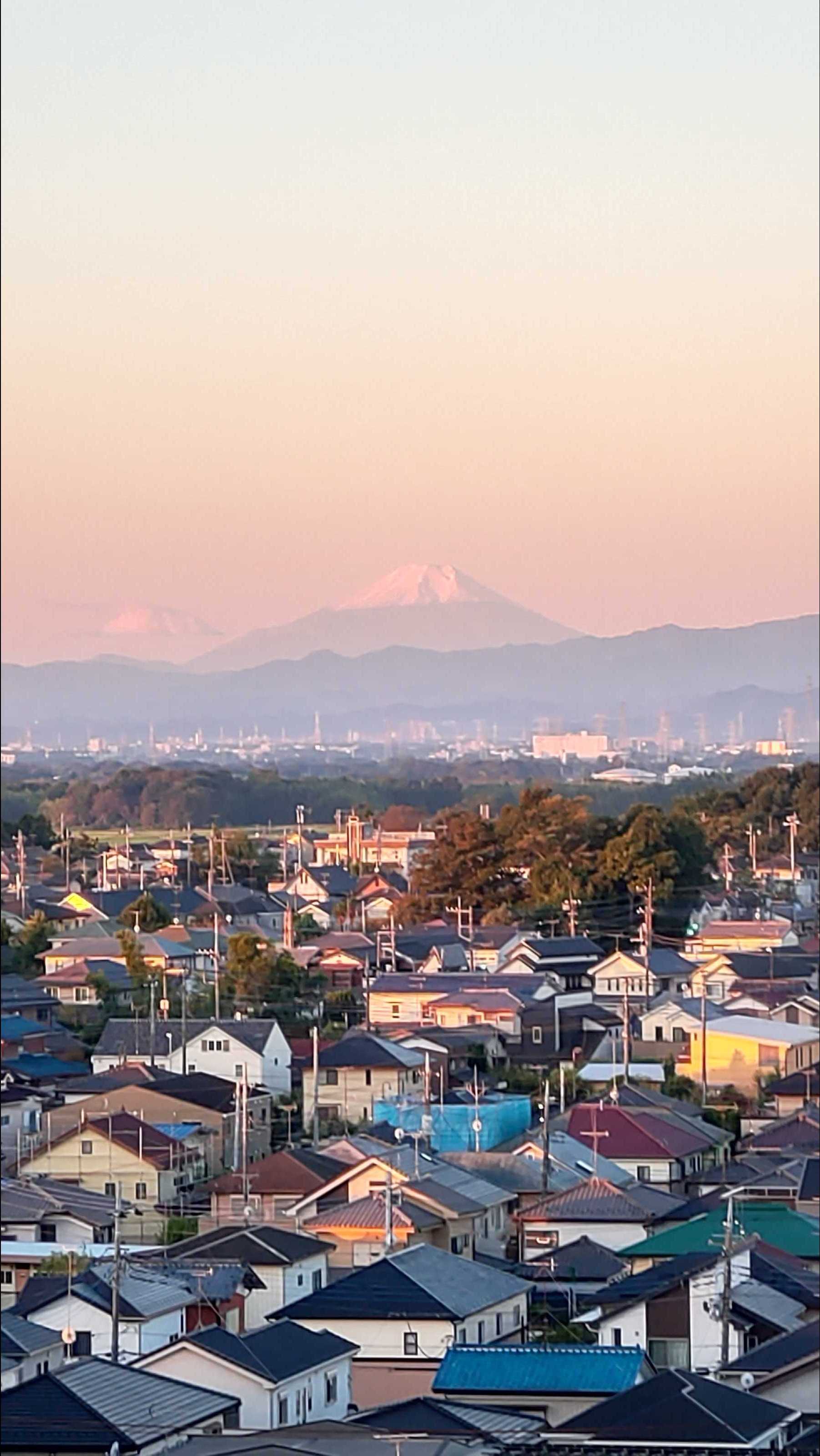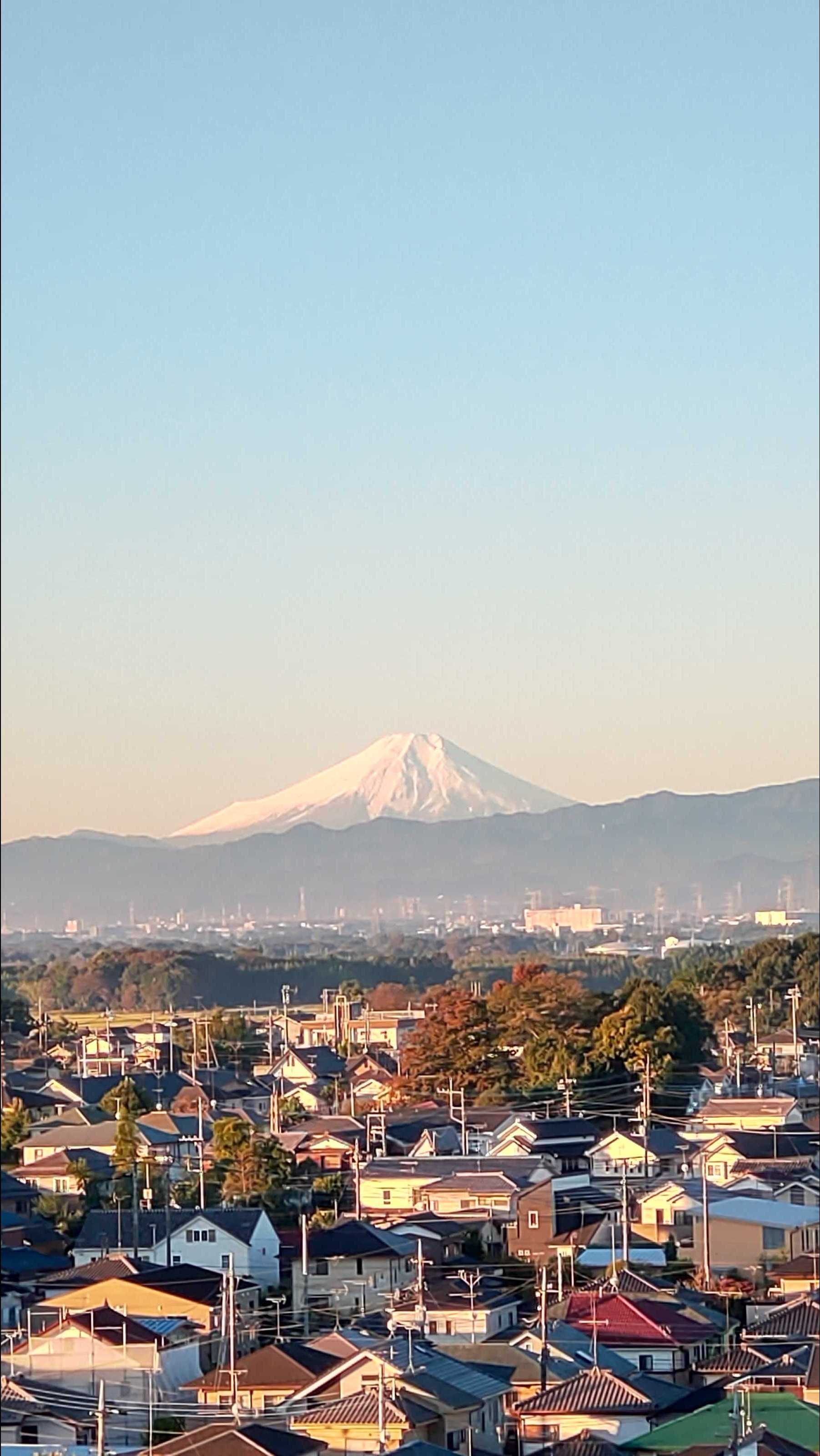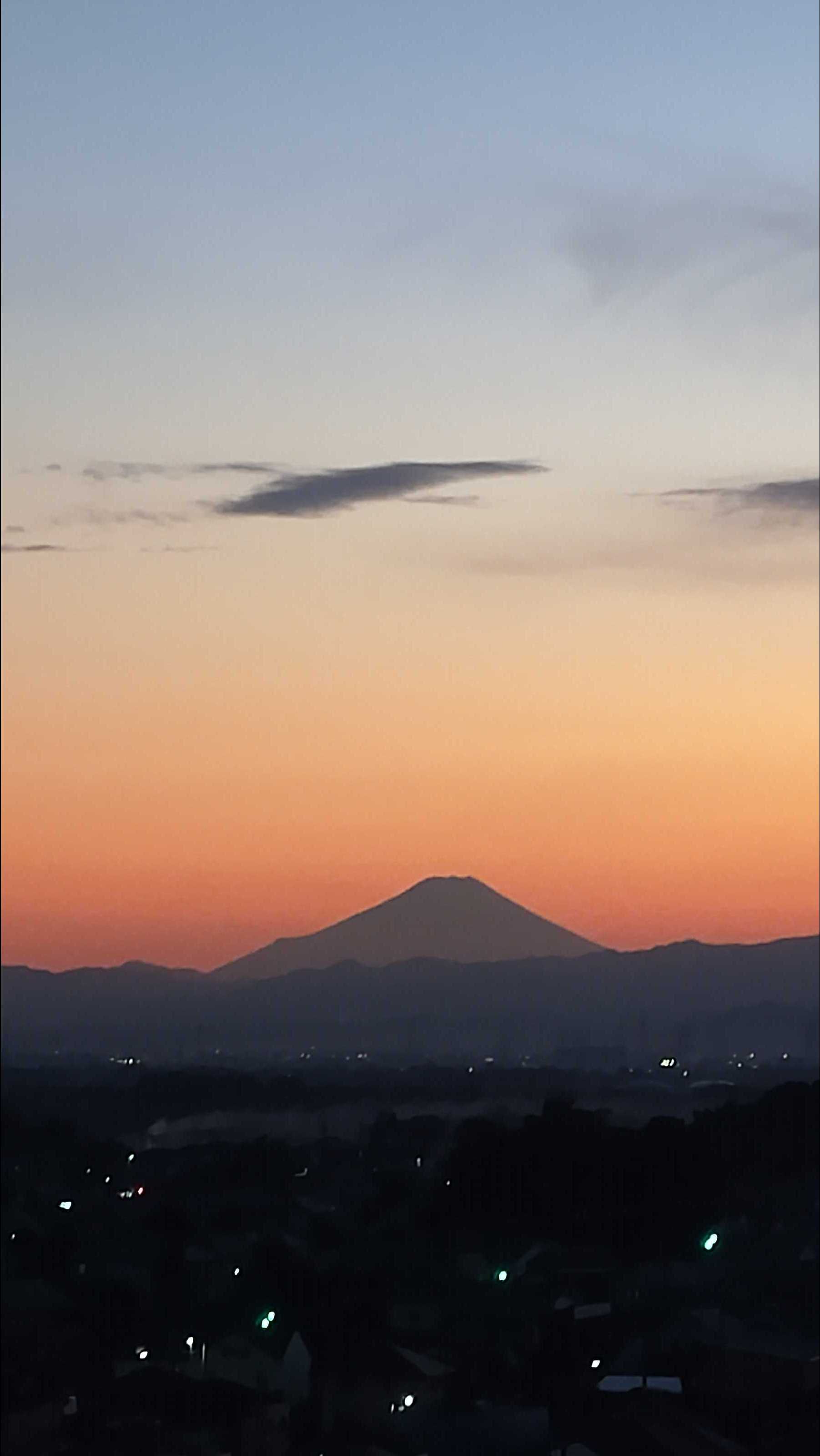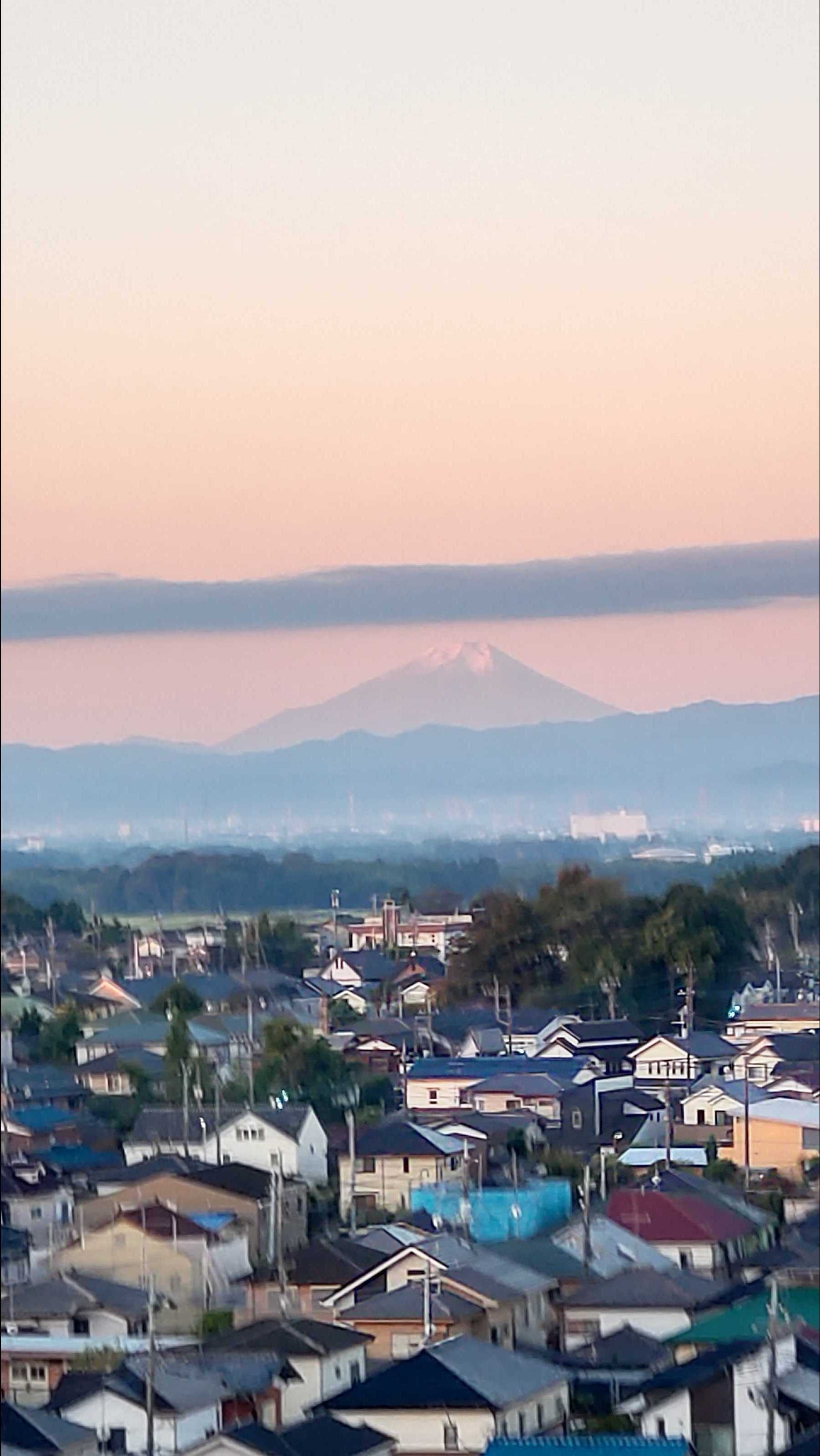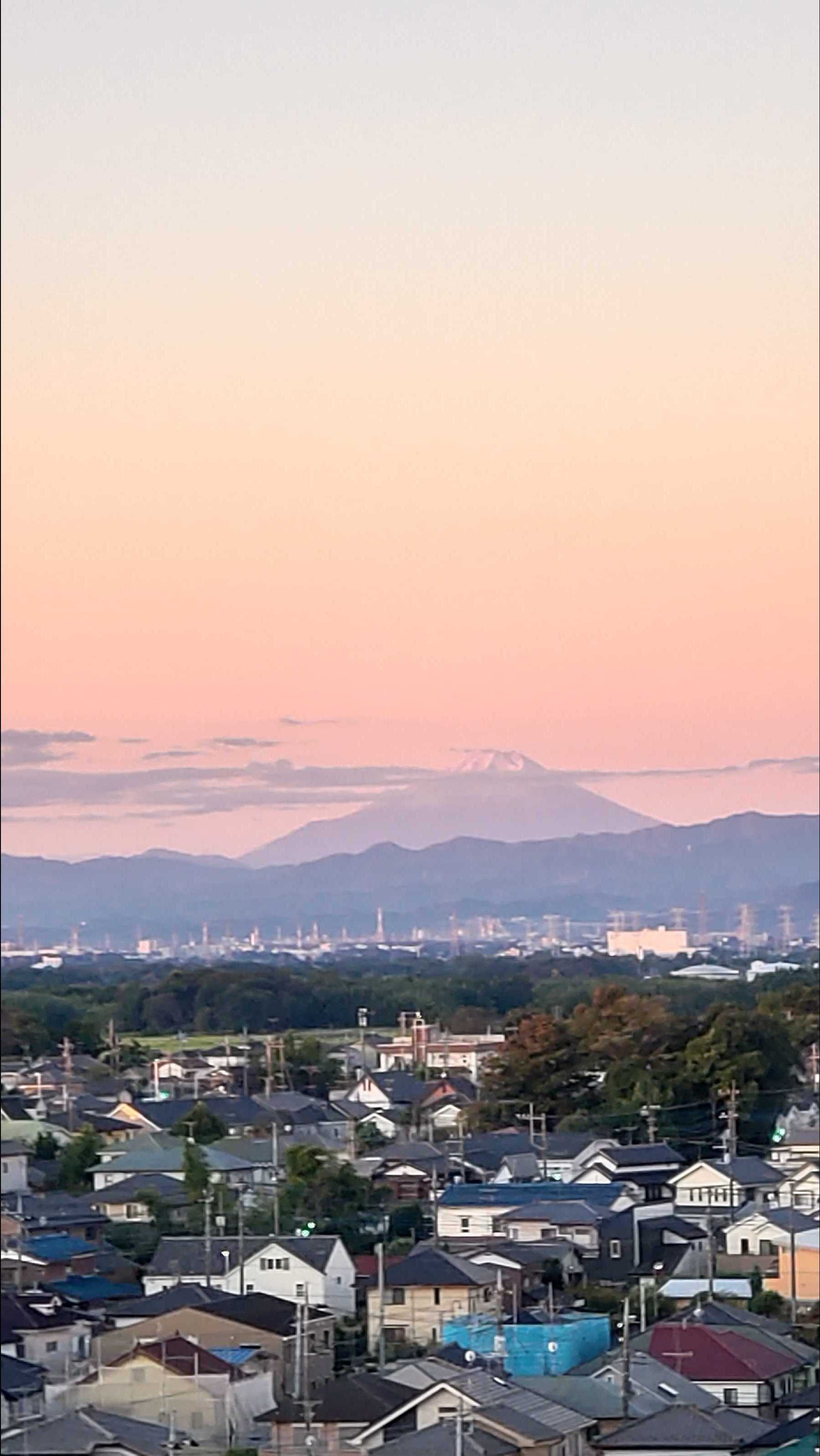 今朝は南の空に雲がありまだ日が出ていませんが、雲一つない🗻が見えています。今日は秋晴れです。