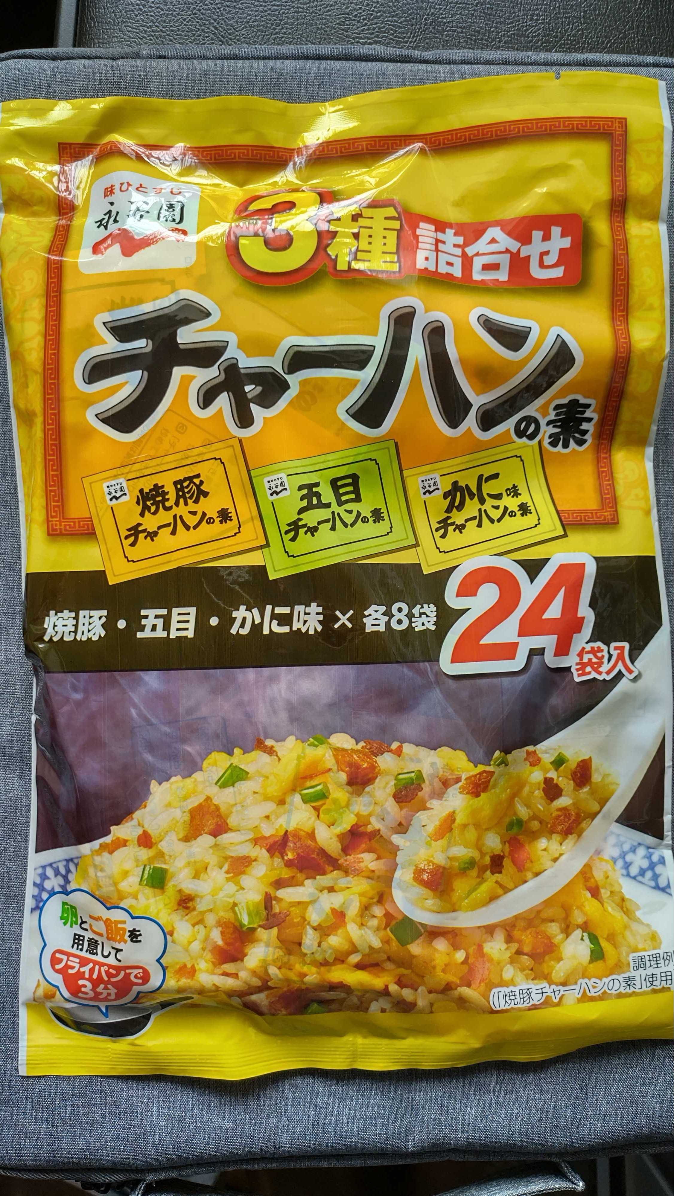 カニと焼豚と五目の3種類それぞれ8袋入っています。賞味期限も8か月あったので使い切るでしょう。余ったご飯と卵、何かの具、ネギなどあれば美味しいチャーハンが出来上がります。