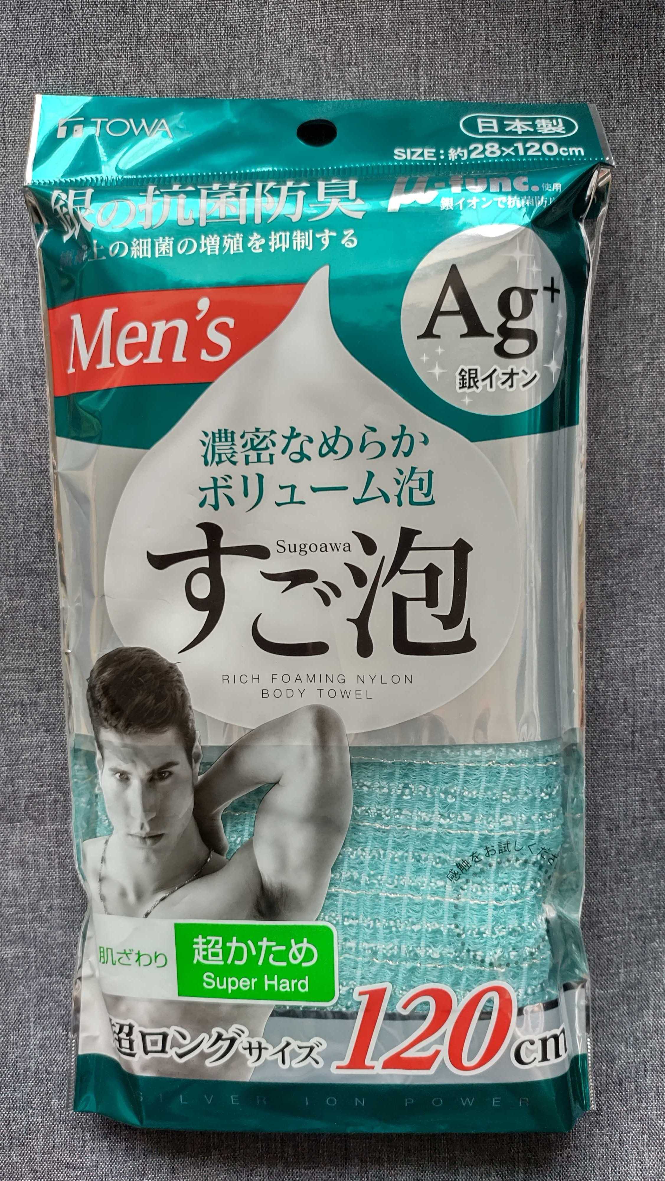 長さが120cmなので背中も洗いやすく、泡立ちもかなり良いです。一番の押しは超固めの材質で、洗っているときの刺激が心地よく汚れが全て落ちそうです。