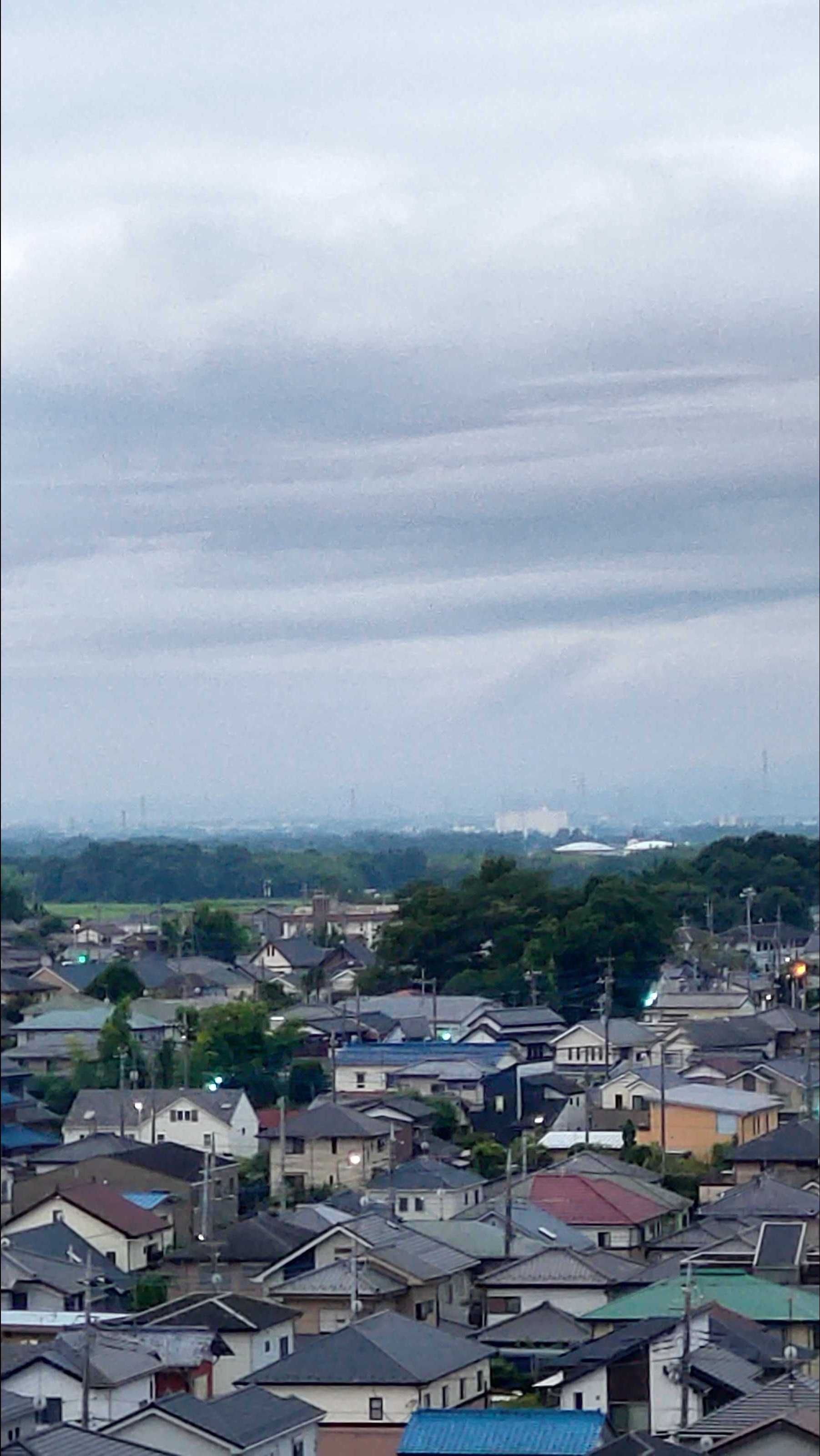 おはようございます。今朝の最低気温は24℃台になりました。北風もあり涼しい朝です。今日は台風9号の影響がでる一日になりそうです。日中の気温も30℃程度になりそうです。明日午後には天気が回復しそうです。今週末から猛暑が戻るまで、つかの間の涼しさを楽しみたいです、良い一日をお過ごしください。今朝は雲で🗻は見えません。5:06