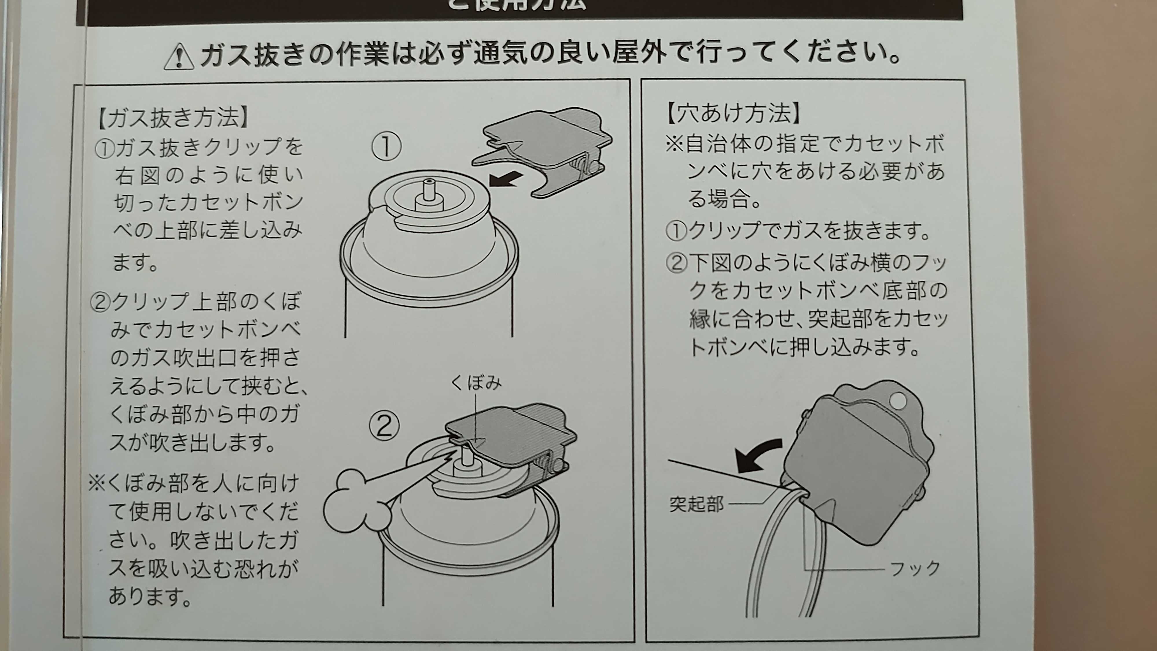 この商品はスプレーの出口を挟んで残りガスを出す方式です。