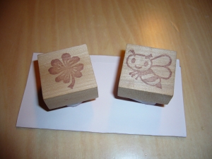今日はとても嬉しい日でした。このブログを通して知り合ったキヨコロさんとお会いすることが出来たのです。個室のある鶏料理屋さんでランチお店の雰囲気はとても個性的で、お料理は安くて美味しかったです。昼寝から起こされたニタロウが最初愚図りまくったり、ニタロウがひっくり返したココアで私とニタロウの洋服が濡れてバタバタと店を出ることになったりと、始終落ち着かなくてごめんね~キヨコロさん。しかもニタロウの着替えをシャツしか持っていなかった私は、コウくんのズボンを頂戴してしまいましたでも約2時間いろいろなお話が出来て本当に楽しかったですキヨコロさんはとても素敵な方で、こんなキレイなママがいるコウくんは幸せだわそしてそして帰りがけにこんなかわいいプレゼントを頂きました。キヨコロさんのブログでも見ていた手作りの消しゴムスタンプです。みつばち、クローバー、そして画像出せなくて残念ですが私の名字をローマ字で作って下さいました。ほんっとに可愛いの影響を受けやすい私は習ってみたくなりました。イチヒメはこのスタンプを使って早速お友達に手紙をかいてました。スタンプ大事に使わせて頂きますね。キヨコロさん、今日は本当にありがとう