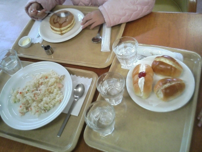 イチヒメが図書館で絵本を借りたいというので、帯広図書館へ。最近は自分の住む町の図書館で用を済ませていましたが、やっぱり帯広図書館はいい!(数年前に立て替えられる前は、結構古い建物だったそうです。私が越してきたときはすでに今の図書館でした)特に絵本コーナーはホントにすごいよ。あれだけ充実してる図書館はめずらしいんじゃないかな。ディスプレイも、上の段は表紙が見えるような並べ方、下の段は普通に本棚に並んでいると言う感じなので、表紙の絵の雰囲気で選ぶなんてことも出来ます。今日は15冊も借りてしまいました。重い!ちょうどお昼を過ぎたので、3階のカフェコーナーでお昼を食べることに。ピラフ(スープ付き)380円、ロールサンド3個(サラダ付き)350円、ホットケーキ170円と安いよ~。明るくゆったりした席で、とても落ち着いて食べられます。ニタロウがいるから私は落ち着いてられないけど午後からは図書館のすぐ近くで行われた子供向けイベントに誘われていたので行ってみました。「からだについて知ろう」みたいな内容だったけど、難しい物ではなく、ちょっとコント風の感じで、最後はみんなでダンスそれが終わった後、お友達とどこかでお茶飲もうということになり、またまた図書館のカフェへ行った私達であります
