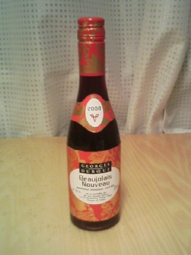 たぶん人生で初めてボジョレーヌーボーを飲みました。ダンナも私も普段は全く飲まないのですが(家にビールの買い置きがないのを以前友達にびっくりされたことがある)、夕食の買い物へ行ったスーパーで、私達でも飲み切れそうなハーフボトルが売っていて、しかもラベルのかわいらしさに惹かれて買ってしまいました。そしてこの時期、週末の夕食は鍋が定番の我が家です。本日は「ごま豆乳鍋」。まろやかな味で、最後に作ったおじやも美味しかったもともとワインに詳しいわけではないけれど、ボジョレーヌーボーはとびきりおいしい!!という訳でもなく、ふーん、なるほどね、って印象でしょうか。まぁ旬の物ってことで