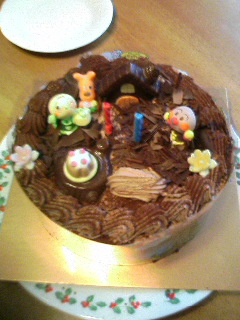 ケーキは不二家の「アンパンマンバースデーケーキ」です。