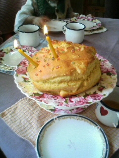 こちらが先生が焼いてくれるお誕生ケーキ。とっても素朴なんだけど美味しいの。