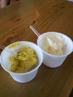 こちらは阿寒湖近くで食べた、牧場直営のアイスクリーム。