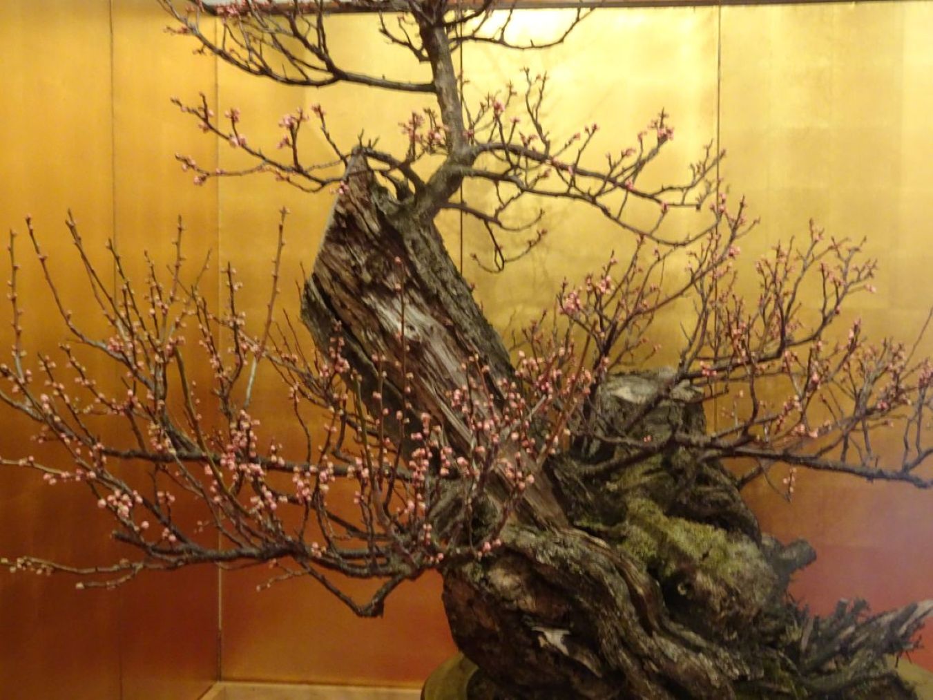 日本一の歴史と規模を誇る「長浜盆梅展」、昨年に続き、2年連続見参。2月27日の「菅原天満宮盆梅展」、「郡山城盆梅展」に続き、2日後の3月1日に「第74回長浜盆梅展」に足を運んでみました。「菅原天満宮盆梅展」、「郡山城盆梅展」は、リュウちゃんの家に近い奈良県のイベントだが、「長浜盆梅展」は滋賀県の長浜市での開催、開催地は少し遠方なのだ。この日は午前7時30分に家を出発、昨年と違って、JR京都駅から大津、彦根、米原経由で長浜に向かいました。JR長浜駅到着が午前11時40分、長浜市のシンボル、「伊吹山」がお出迎え。伊吹山の反対方向の琵琶湖側には、「長浜城」が見えます。<長浜城について>「長浜城」は、天正元年(1573年)、豊臣秀吉によって築城されました。しかし、天正13年(1586年)に起きた「天正地震」により全壊してしまい、以後、修復されることはありませんでした。現在見られる天守は、昭和58年に犬山城や京都の伏見城を模して造られた鉄筋コンクリート製の「復興天守」で、現在は「長浜城歴史博物館」として使用されています。尚、「長浜城」の周囲は「豊公園(ほうこうえん)」という総合公園として整備されていて、この公園の名称は、長浜城を築城した豊臣秀吉の「豊」の字を取って名付けられたようです。ここは「全国桜名所100選」に選定されています。(桜満開の長浜市「豊公園」、この写真はネットからお借りしました)今回は昼食の前に盆梅展を観に行くことにしました。盆梅展の会場の「慶雲館」は、長浜駅から徒歩3分です。正午少し前に会場に入りました。会場の「慶雲館」の前庭の盆梅、昨年と比べても、開花が少ない。今年の冬の寒さのせいで、開花が昨年よりも一か月近く遅れているようだ。会場に入ります。会場内の盆梅、ざっと見渡したところ、全体的には「3分咲き」くらいのようだ。盆梅の開花も、昨年より一か月近く遅れている?以下、この日撮った「盆梅」を紹介致します。尚、「長浜盆梅展」には、トータル300鉢の盆梅が出品されますが、開花時期に応じて入れ替えが行われるので、一日で展示される盆梅は90鉢なのです。尚、紹介した盆梅の一部には、下記のサイトから拾った「梅の品種」、「色・花の種類」、「樹齢」を書きました。以下のサイトには、お借りしたデータの他にも「盆梅」に関する興味深い記述がいっぱい書かれていますので、興味のある方はクリックしてご覧下さいね。<第74回長浜盆梅展><阿分保乃(あけぼの)>(品種名):白加賀、(色・花の種類):一重白梅 (樹齢):約100年、<百千鳥(ももちどり)>一本の木に2色の花を付ける盆梅、品種は「思いのまま」なのかな?<凝馨(ぎょうか)><白鷺(しらさぎ)><華婉(かえん)>(品種名):一重野梅、(色・花の種類)一重白梅、(樹齢):伝80年、<清麗(せいれい)>(品種名):豊後性藤牡丹枝垂れ、(色・花の種類):八重咲薄紅枝垂れ、(樹齢):40年、<雛紗(ひなさ)>(品種名):実梅、(色・花の種類)一重薄紅、(樹齢)伝150年、<壺中梅(こちゅうばい)><不老>(品種名):杏性緋の袴(あんずしょうひのはかま)、 (色・花の種類):八重紅梅、 (樹齢)伝400年、「長浜盆梅展」に出品される盆梅の中で、最も樹齢の高い盆梅です。推定樹齢400年!にも拘わらず、見事な花を咲かせている!(ネットからお借りした満開の「不老」)<蓬莱>(品種名):実梅、(色・花の種類)一重白梅、(樹齢)伝150年、<弦月><高山(たかやま)>(品種名):杏性千歳菊、(色・花の種類):八重紅梅(樹齢)・伝400年、前述の「不老」と並ぶ最高樹齢の盆梅です。梅の品種、同じなのかな?(ネットからお借りした満開の高山)<芙蓉峰(ふようほう)>(品種名):杏性千歳菊、(色・花の種類)八重紅梅、(樹齢)伝350年、重さ約800キログラム、一番重い盆梅です。重さは一番、貫禄も一番の盆梅だ!(ネットからお借りした芙蓉峰)<初音(はつね)><千代の梅><春灯(しゅんとう)>(品種名)・道知辺、(色・花の種類):一重咲きピンク、(樹齢):約50年、<花簾(はなすだれ)>珍しい「枝垂れ盆梅」です。<夢響(ゆめひびき)>形のいい盆梅だ。(品種名):白加賀、(色・花の種類)一重白梅、(樹齢)伝100年、<トリビア:全国の著名な盆梅展>今年、リュウちゃんは地元奈良県の「菅原天満宮盆梅展」、「郡山城盆梅展」、それと今回の滋賀県の「長浜盆梅展」と、3か所の「盆梅展巡り」をしました。近畿地方だけで著名な盆梅展が3か所もある。では全国には、どれ位、著名な盆梅展があるのだろうか?という疑問を持ちまして、ネットの検索サイトに「日本全国の著名な盆梅展一覧」と入力して検索しましたところ、、、アチャ~、ヒットしたのは、リュウちゃんが今年巡った、3つの盆梅展ばかりなのだ!大きな盆梅展は全国で、この3つだけなのか???更に深く検索しました所、以下のような盆梅展がヒットしました。★「玉名盆梅展」(熊本県玉名市)★「大府(おおぶ)盆梅展」(愛知県大府市):長浜市の盆梅の出張展示、★「たにぐみ盆梅展」(岐阜県揖斐川町)★「東浦町盆梅展」(愛知県東浦町)★「得月楼盆梅展」(高知市の老舗料亭「得月楼」):食事客