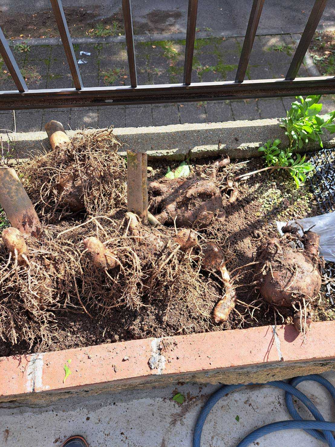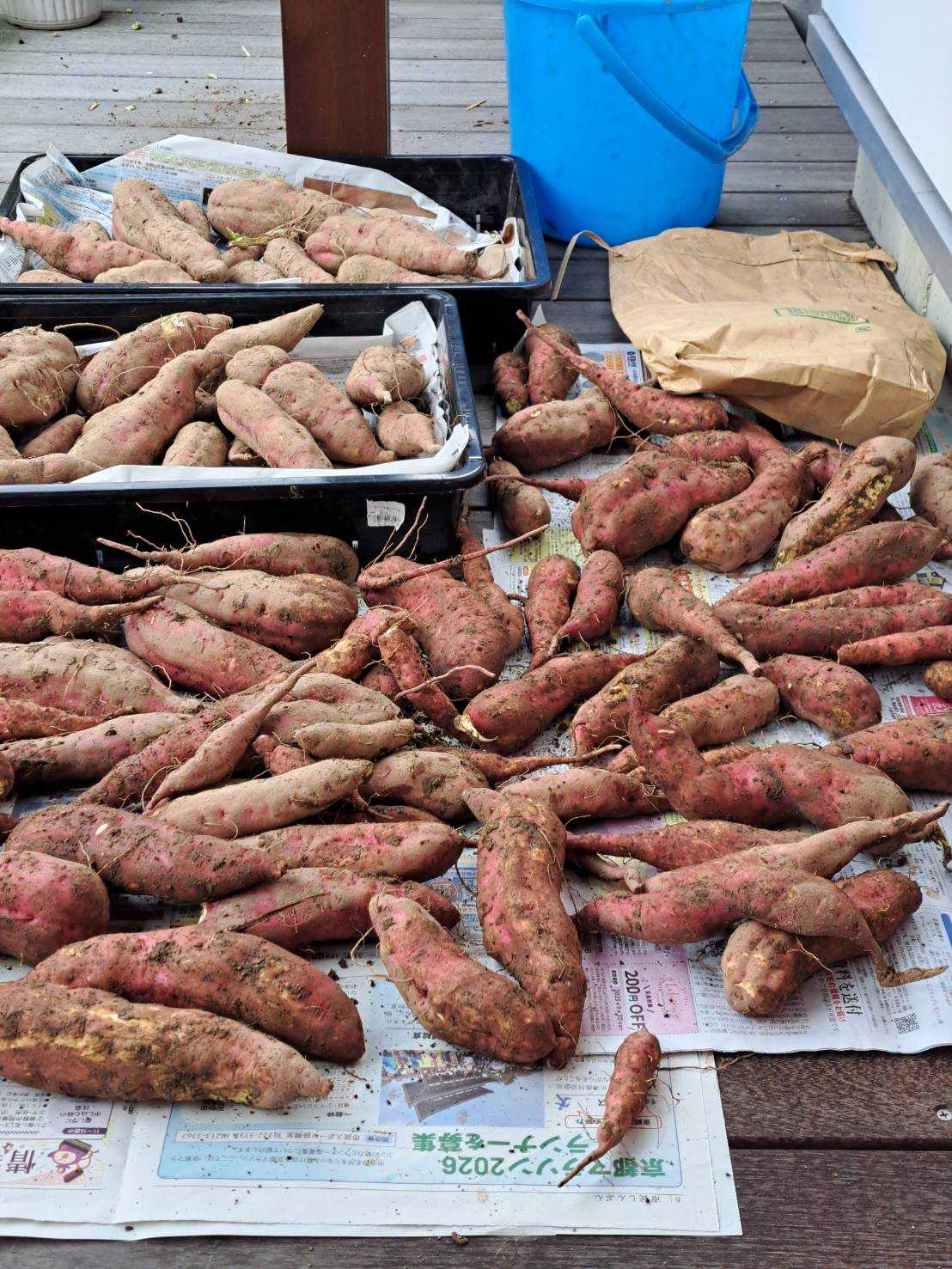 今年は全部で60株も植えてしまったサツマイモですがどちらかといえば蔓ボケという状態のようです大きさも数も思ったほどではなさそうですが半分ほど収穫してみました大きさは丁度良い位なのですが、一株平均2本ずつ程なのであまり良い出来とは言えないようですあとちょっと見には分かりにくいですが、虫食いのものも多いです掘っていると大きなガの幼虫が沢山出て来て、薬を撒いていなかったことを後悔しました体力が二人とも十分に戻っていませんが、何とか畑の畝を作って大根の種まきをしました庭でポットに白菜の苗と玉ねぎの苗を育てています畑にはあとほうれん草と野沢菜と水菜と菊菜を直播きで育てる予定でブロッコリーとキャベツは苗を購入予定です家庭菜園の方も秋冬用の野菜の準備で忙しくなりそうです