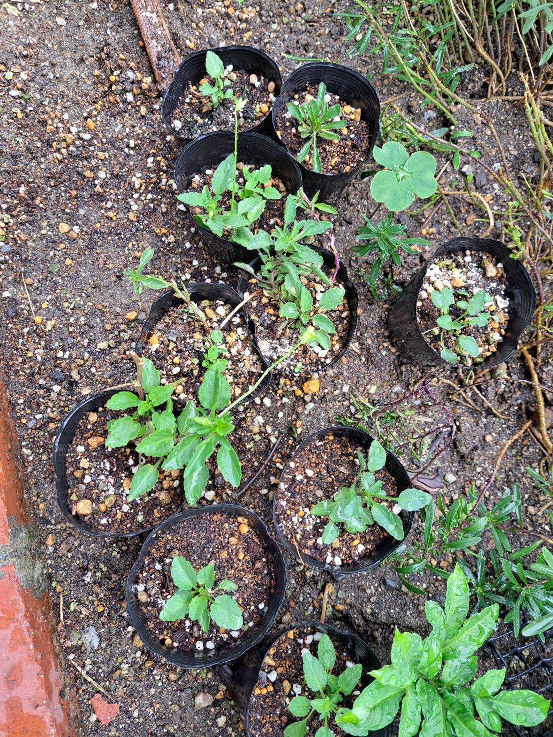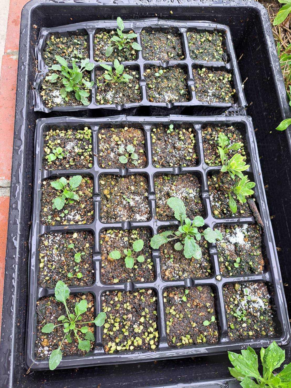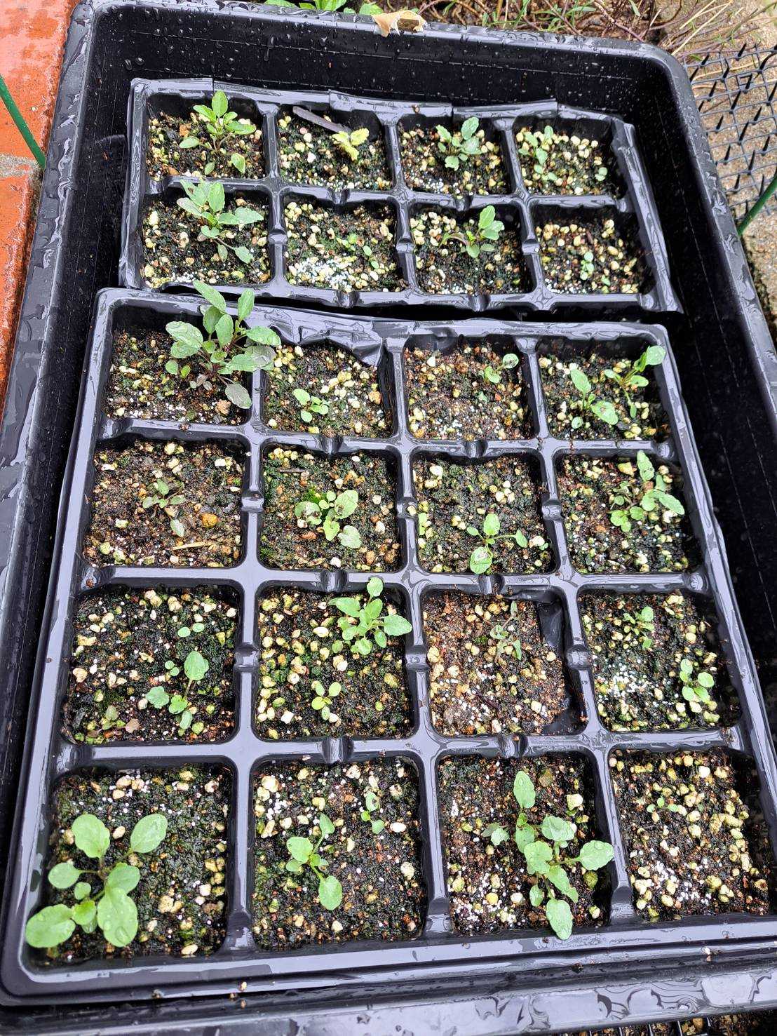 こぼれ種からの発芽苗の方が成長が今の所順調です ポットに植え替えて花壇の準備が出来たら