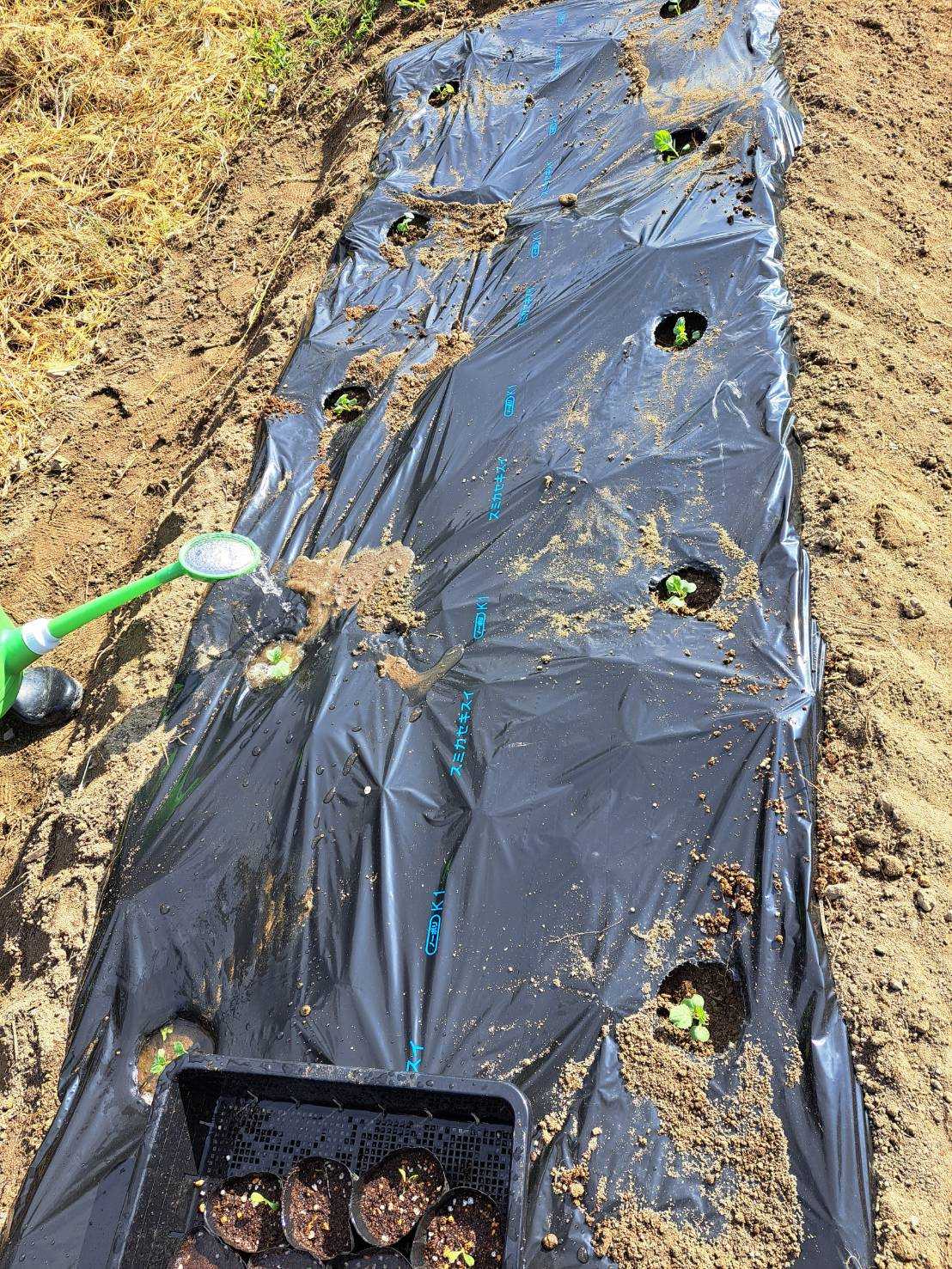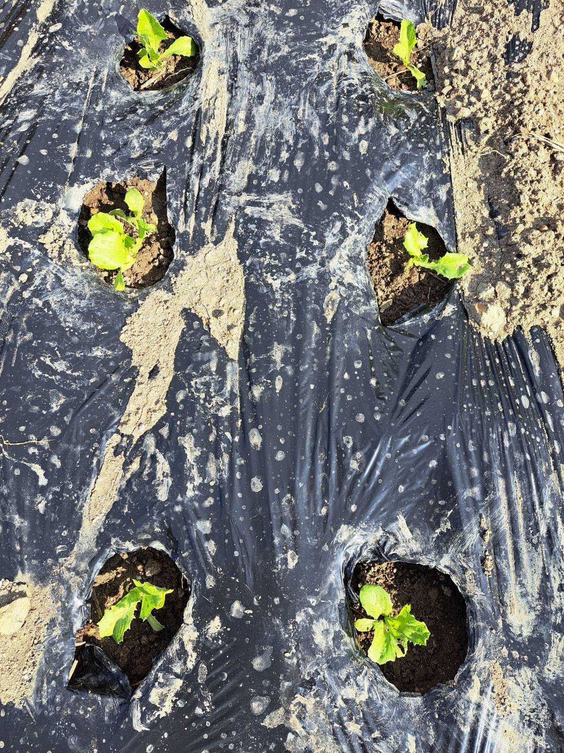 手前は自前のレタス苗とキャベツ苗  植えたのが遅かったので今からで成長して巻いて