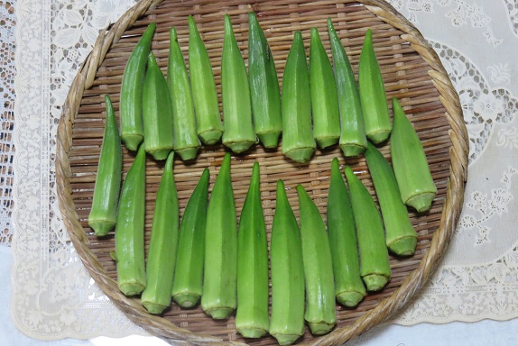 雨でしっとり濡れた菜園、初めにオクラの収穫。次いで支柱が折れた部分から上の雲南百薬の蔓を撤去しいいところだけを収穫。