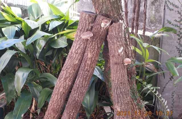 1037,東窓下の椎茸、雨が降らないので大きくなっていない