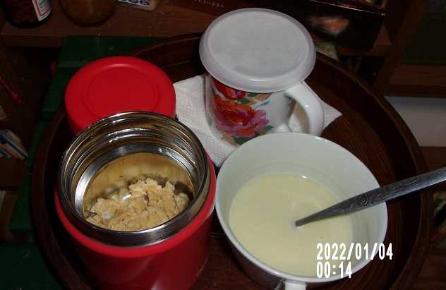 0014,夜食、S/Eまぶし発芽米粥、コーンミルクポタージュ、