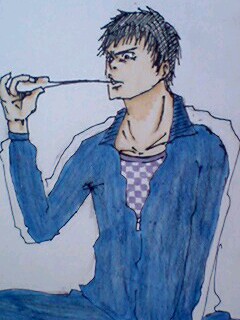 微妙なラインなのですが、自分的には脱スランプですwwわほーいwwいや、でも、ほんとに微妙なんです(汗何故、この長期のスランプが突然直ったかというとですね…多分、冬休みで、宿題とか模試の勉強ほったらかしで落書きしているからです(笑 ほんとに、微妙なんですけどみっちー。というか、ジャージの色とかかなり失敗しました(焦あのですね、自分的には湘北のジャージ以外の赤は花道専用がいい。的な思考です(笑で、青かなぁ…と思っていてノリノリで塗っていったら…あ、あは?(笑ちなみにその時のBGMはWild beastwwやっぱりかっこいいです、中井さんwwちなみにちなみに。上のアップ 多分携帯からは見えないのかと思いますが…がんばってください!!(親指をぐっと!!笑)あ、これでもお餅を食べているんですよ?(笑