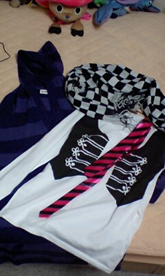 紫のボーダーセーターとTシャツと市松模様のマフラー!これ念願です!