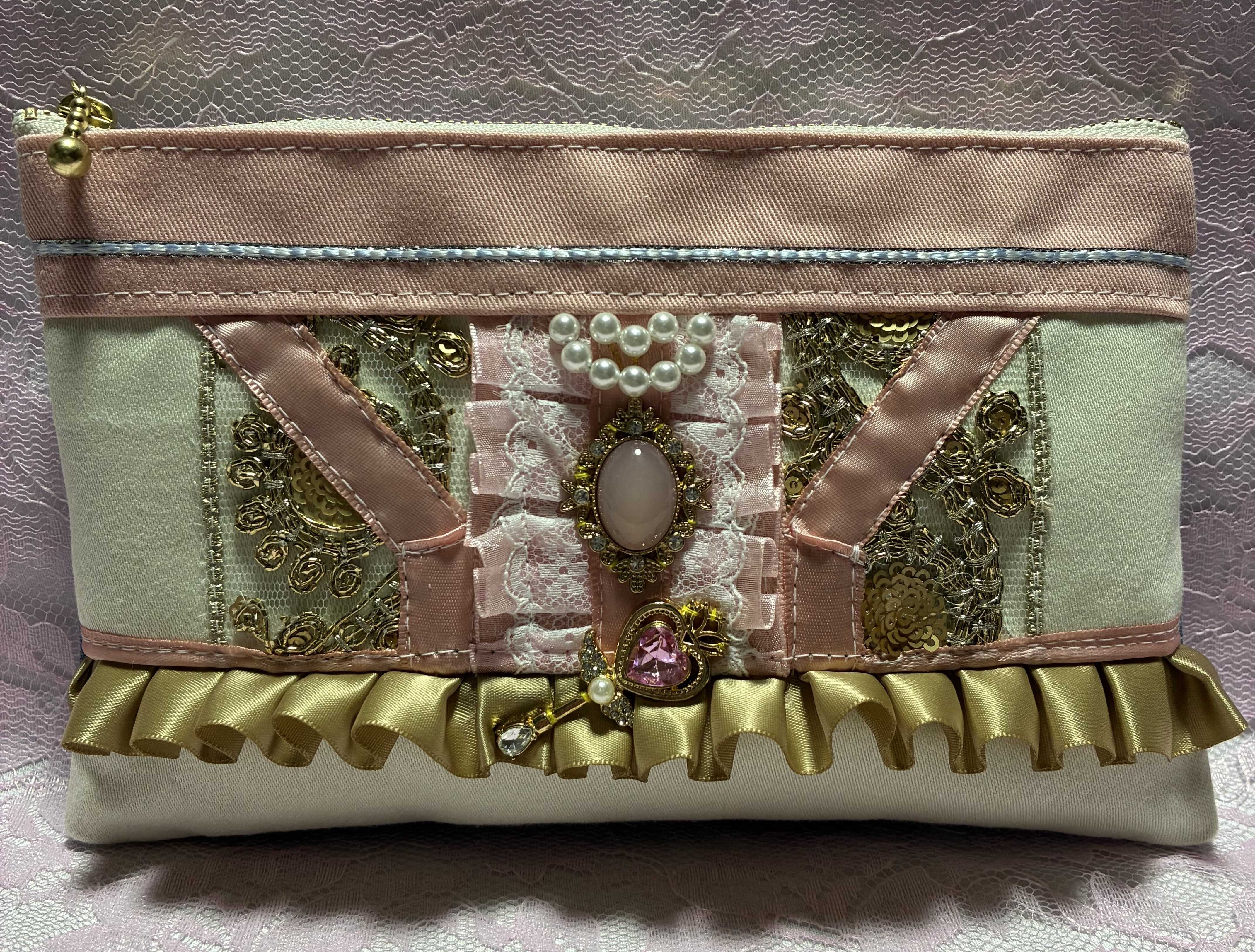 衣装ポーチハード接着芯使用ミシン縫いと手縫いの作品です。接着剤使用なし。Snow Man佐久間大介🩷くん♪地球(あい)してるぜメンバーカラー ピンク色色々、変えています。同じ物は作りませんので、1点物です。今回は、変身前をデニム風で青色生地にしました。変身後をアイボリー生地にしました。ファスナー 20センチ縦 約13センチ表生地にハード接着芯を使っています。 表生地ピンク色生地 上と中央縦に使用アイボリー生地青色生地裏地桜柄生地飾り銀色細リボンピンク色サテンリボン金色刺しゅうデザイン幅広リボン白色レース付きピンク色フリルベージュフリルパールビーズ ビーズ刺しゅう縫い付けピンク色金色チャーム、黄色1ミリ斜め飾りミシンステッチ パールの中央V字形ピンク色ハートステッキチャームSnow Man岩本照 深澤辰哉 宮舘涼太 佐久間大介 阿部亮平 渡辺翔太 目黒蓮 ラウール 向井康二衣装ポーチ、衣装バッグ、キーホルダー、衣装巾着お化粧ポーチ、コスメポーチ、通帳ケースキーホルダー、チャーム、バッグチャーム 入れ写真ケース、デコケース 入れすのチル ぬい服、すのチル衣装、衣装風小物 入れ