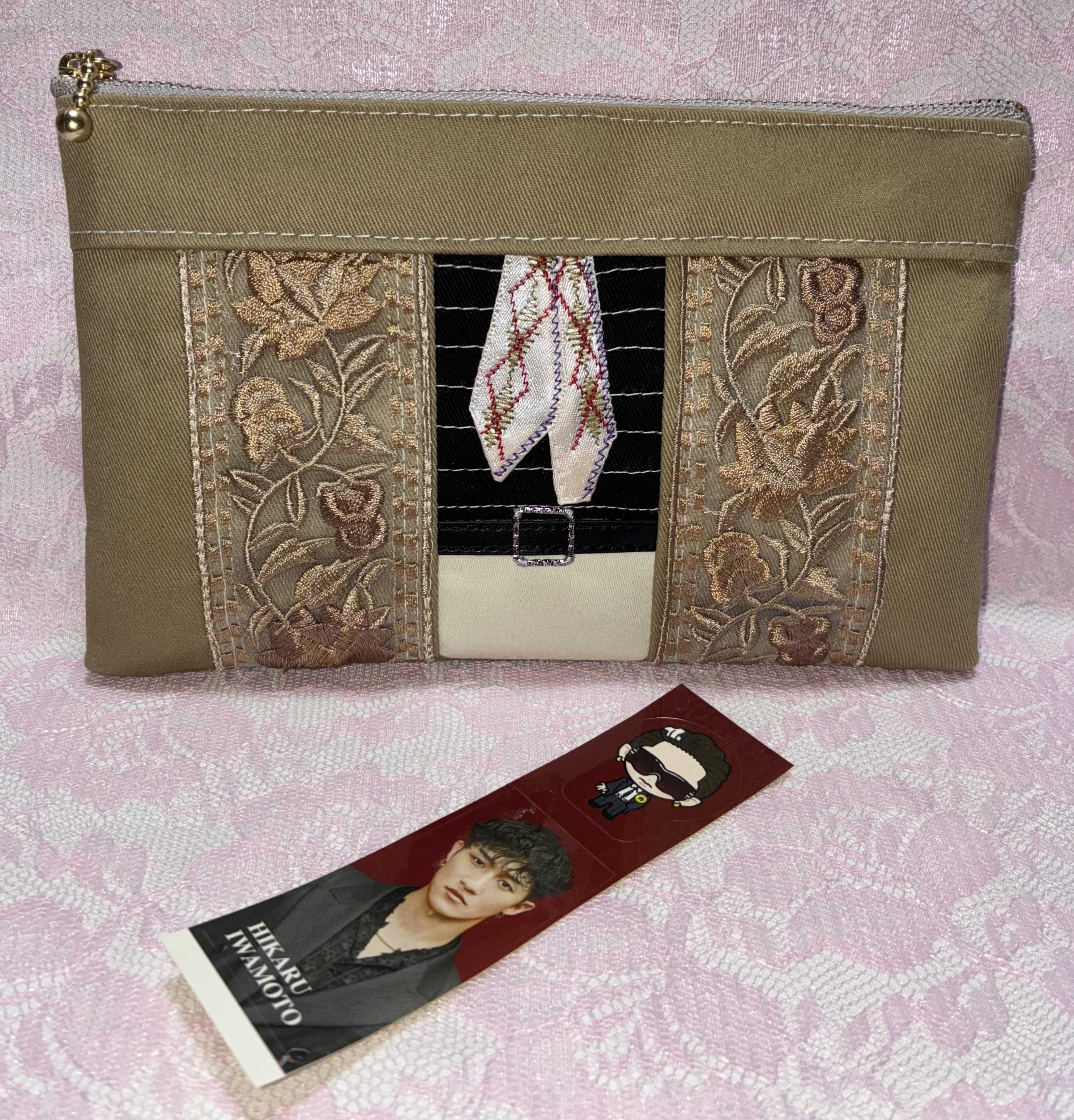 色々、変えています。同じ物は作りませんので、1点物です。衣装ポーチハード接着芯使用ミシン縫いと手縫いの作品です。接着剤使用なし。Snow Man岩本照💛くん11月5日放送ナイナイミュージック♪TRUE LOVEメンバーカラー 黄色音故知新岩本照シールファスナー 20センチ縦 約12、5センチ表生地にハード接着芯を使っています。 表生地ベージュ生地黒色生地アイボリー生地裏地黄色生地 優しいバニラカラー飾り白色ミシンステッチ ボーダー黒色シャツ部分白色サテンリボン 飾りステッチ 抹茶色ひし形、赤色斜めステッチ、紫色斜めステッチ黒色ベルト合皮、銀色四角柄入りリングベージュ幅広刺しゅうリボンSnow Man岩本照 深澤辰哉 宮舘涼太 佐久間大介 阿部亮平 渡辺翔太 目黒蓮 ラウール 向井康二衣装ポーチ、衣装バッグ、キーホルダー、衣装巾着お化粧ポーチ、コスメポーチ、通帳ケースキーホルダー、チャーム、バッグチャーム 入れ写真ケース、デコケース 入れすのチル ぬい服、すのチル衣装、衣装風小物 入れ
