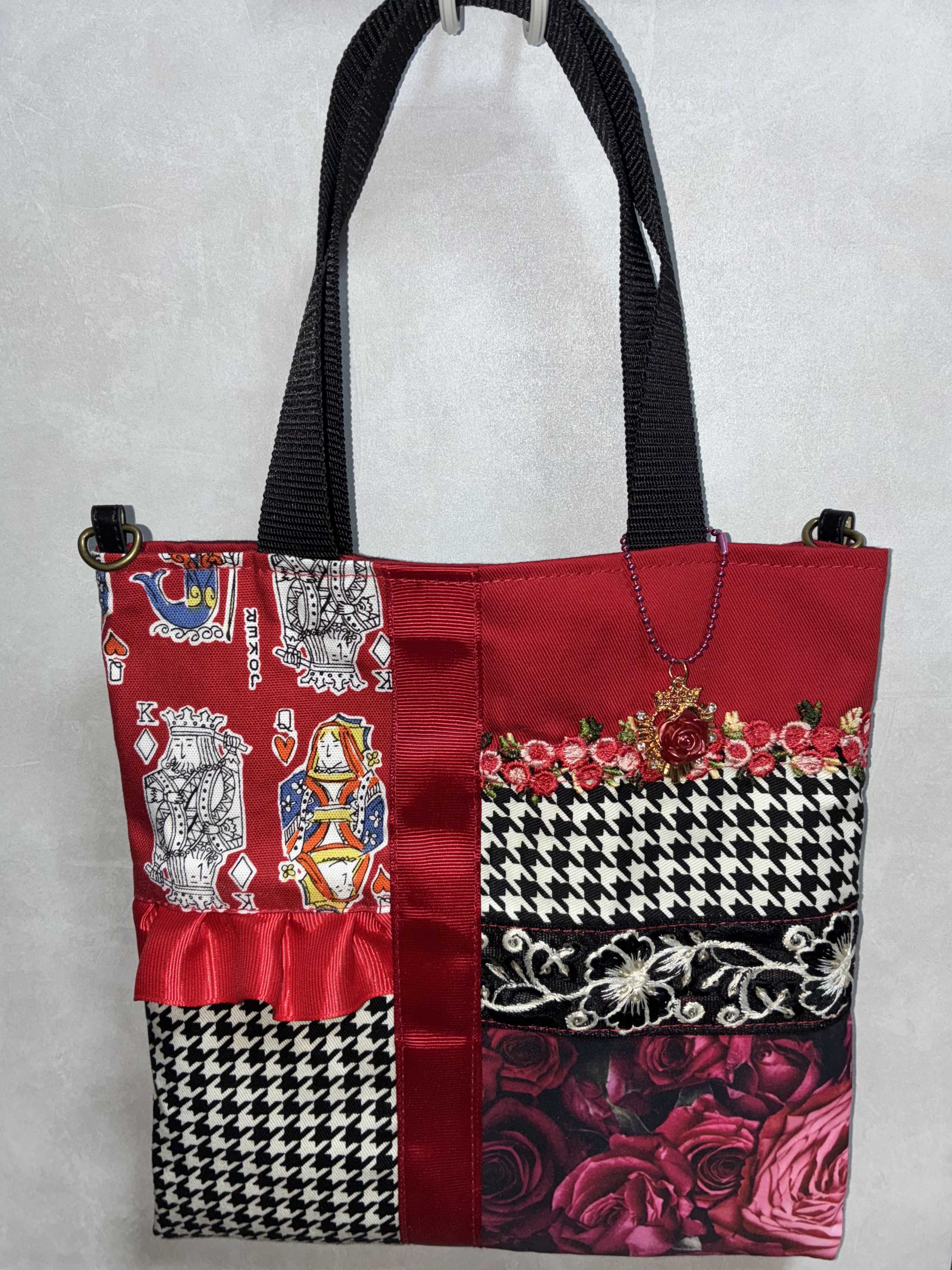!ミニトートバッグ!ポーチ代わりサイズ!内ポケットなし!お出かけに!グッズ入れに!貴重品入れに約23x 22センチ!薄手接着芯を使った、カジュアルタイプです。!表生地 トランプ柄、千鳥格子柄、赤色無地、バラ柄、後ろ面 厚手凹凸デザインバラ柄!裏地 赤色無地!持ち手 画像では、長く見えます。約31、5センチ!入れ口に、マグネット、マジックテープ、ファスナーが無いタイプで、入れ口広がり軽減用にストラップを作りました。材料 バラ宝石金色チャーム、金色リング、ピンク色ボールチェーン !ショルダーひもをつけるDカンを左右につけました。材料 黒色合皮ベルト、Dカン !赤色フリル幅広、赤色グロブランリボン、ミニバラ刺しゅう葉入りリボンミシンプラス手縫い付け、黒色白色刺しゅうリボン15センチ110円物 Snow Man❤️宮舘涼太Aぇ! group❤️末澤誠也KEY TO LIT❤️井上瑞稀B&ZAI❤️菅田琳寧KinKi Kids❤️堂本光一嵐❤️櫻井翔Hey!Say!JUMP❤️山田涼介timelesz ❤️佐藤勝利A.B.C-Z❤️橋本良亮WEST❤️重岡大毅SixTONES❤️ジェシーなにわ男子❤️西畑大吾Travis Japan❤️宮近海斗Snow Man岩本照 深澤辰哉 宮舘涼太 佐久間大介 阿部亮平 渡辺翔太 目黒蓮 ラウール 向井康二衣装ポーチ、衣装バッグ、キーホルダー、衣装巾着お化粧ポーチ、コスメポーチ、通帳ケースキーホルダー、チャーム、バッグチャーム 入れ写真ケース、デコケース 入れすのチル ぬい服、すのチル衣装、衣装風小物 入れ