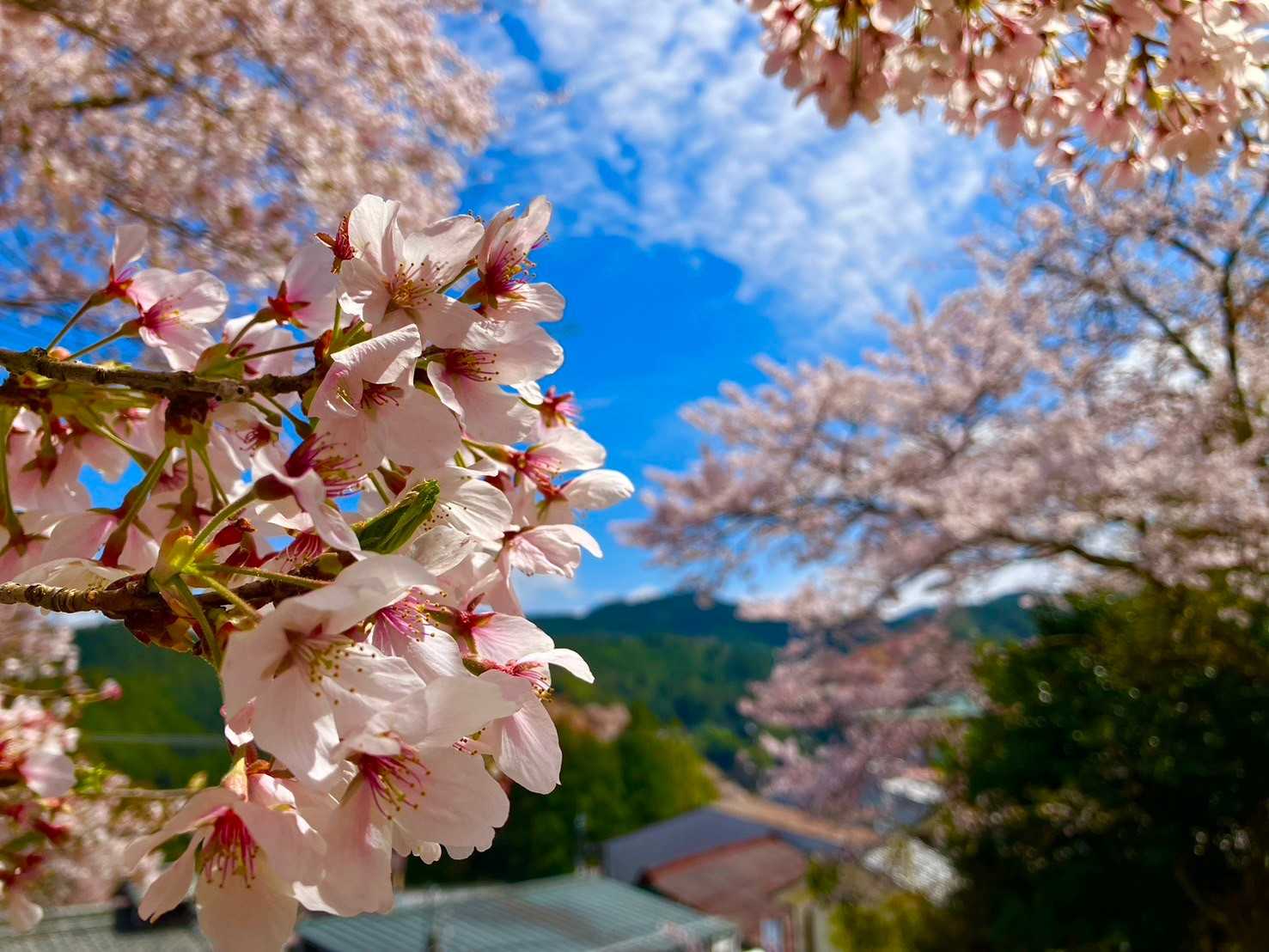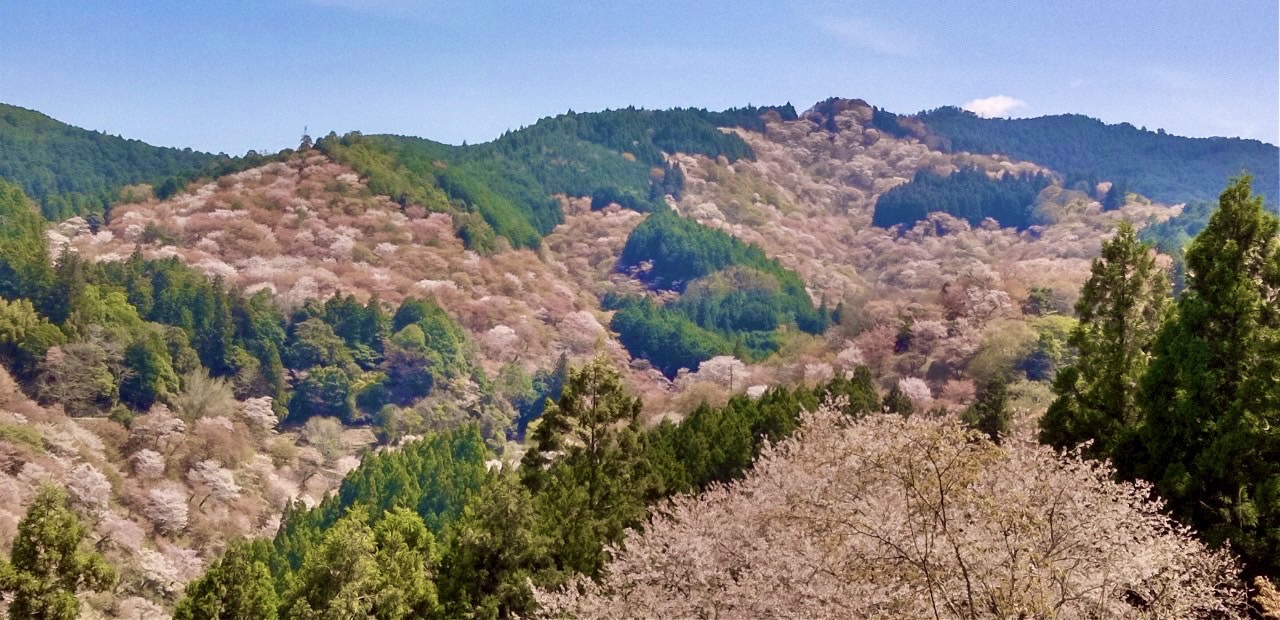 快晴! 絶好のお花見日和の4月1日(土曜日)に、日本有数のお花見の名所で、世界遺産でもある『奈良県の吉野山』へ行ってきました吉野山へは何度かお花見や紅葉を見に行ったことがあるのですが、今回は初めて奥千本まで足を延ばしました。吉野山の桜は、下千本(しもせんぼん)・中千本(なかせんぼん)・上千本(かみせんぼん)・奥千本(おくせんぼん)と、区域(標高)によってそれぞれ呼び名があります。山の下のほうから桜が咲いていくので、下千本、中千本は満開でも、上や奥はまだ2分咲き、3分咲きということがあります。今回(4月1日時点)は、下中千本は満開、上千本もほぼ満開に近い状態でしたが、奥千本は2,3分咲きでした。吉野山へは電車で行きました。車は交通規制等で吉野山までたどり着けない可能性があるので、電車で向かうのがおススメです近鉄電車で「吉野駅(終点)」まで行って降りると、改札を出てすぐ左側へ向かい、まずおトイレへ。すぐに混んで列が出来るので、いつも私は電車の先頭車両に乗るようにしています(笑)(花見シーズン中はトイレの建屋の横に仮設トイレも用意されます)いつもは吉野駅前からロープウェイに乗って上がるか、下千本の中の「七曲り」と呼ばれるくねくね坂道を歩いて上るのですが、奥千本を目指すために、今回は駅前のバス停から「中千本公園行」のバスに乗ることにします。吉野駅に着いたのは午前8時ごろで、バスの始発は8時40分だったのですが、もうすでにバス停には2、30人ほどの人が並んでいます。40分以上前から並んで待っていたため、無事に始発(一番目)のバスに乗ることができました。バスは次々きて10台ほど停まっている状態だったので、順次後続車が出ていくのだと思います。「中千本公園」バス停に到着すると、次に奥千本へ行くために「竹林院前」バス停を目指します。「中千本公園」で下車して、『「奥千本」へはこちら』という看板を目印に、バス停前にある階段を上がっていきます。上がって左手に「竹林院前」バス停があるのですが、9時前ですでに長~い行列が…っ行列を見て諦めた人達が徒歩で奥千本に向かう姿を見かけましたが…奥千本までの道のりは、普段、運動不足の私には過酷だと一緒に行った娘に言われ…行列にただただ並んでバスを待ちました。最終的に、私が並んだ時点で、待ち時間は1時間くらいだったと思います。奥千本までは道が狭いため、通常の観光バスではなくマイクロバスで行くため、乗車できる人数に限りがあります。(ただし、マイクロバスは何台もあり、しばらく待つと次のバスが来るという感じでした)並んで、バス乗車券を購入し、また並んで、ようやくマイクロバスに無事に乗り込んで奥千本口へ!(バスで12分ほど)奥千本口を降りた目の前には、大きな鳥居と上へと続く長い坂道が視界に入ってきました。「金峯神社」への道です急坂を上がると、金峯神社があります。おトイレと屋根付きの休憩所もあり、娘が御朱印をいただく列に並んでいる間に、私はしばし休憩。金峯神社の階段下には左右の奥へ向かう道があり、左に向かうと「義経の隠れ塔」があります。右に向かうと「西行庵」「苔清水」があるのですが、今回は西行庵はパス。それほど歩かなくてすむ『義経の隠れ塔』だけ見に行きました。上りはバスで来ましたが、下りは徒歩にしました。バスで上がってきた道とは違う、ハイキングコースの道です。途中に『吉野水分(みくまり)神社』や『花矢倉展望台』があります。その道を次々に徒歩組の観光客が上ってきます。下りだけでも急な坂で足が痛いのに、私にはやはり歩きで上ることは無理だったと思いました。さて、『吉野水分神社』へ到着しました。歴史を感じる、とても趣のある素敵な神社です。ここでも娘が御朱印をいただく列に並びます。順番が来て御朱印帳を渡してお願いすると、出来上がりを待つ間に参拝。境内の中には立派な桜の木が綺麗に咲き誇っていました。桜の花に包まれながら参拝を終え、御朱印を拝受したあとは、再び下り道に戻ります。水分神社を出てしばらく下ると、左手に『花矢倉展望台』が。そこからの景色は、よく吉野山の写真に使われています。こんな感じ♪ 桜に囲まれた尾根の奥に見える茶色い屋根が、蔵王堂です。 ↓さて、絶景を堪能したら、道に戻って、またひたすら坂道を下ります。上千本から中千本エリアへと下りてきたあたりで、『太鼓判』という鰻のお店を発見。けっこうな人が並んでいましたが、もう午後1時でお腹もすいていたため、最後尾に並びました。並んでしばらくすると、「もう少しで売り切れになります」とお店の人が出てきて、私たちの少し後ろのところでお客さんにお断りしていました。私たちはぎりぎりセーフ。結局、食べられたのは午後3時ごろになりましたが、 美味しかった ので、待った甲斐がありました。腹ごしらえがすみ、再び道へと戻ります。この辺からは、もう山の中ではなく、お店や寺社が並ぶ通りへと続