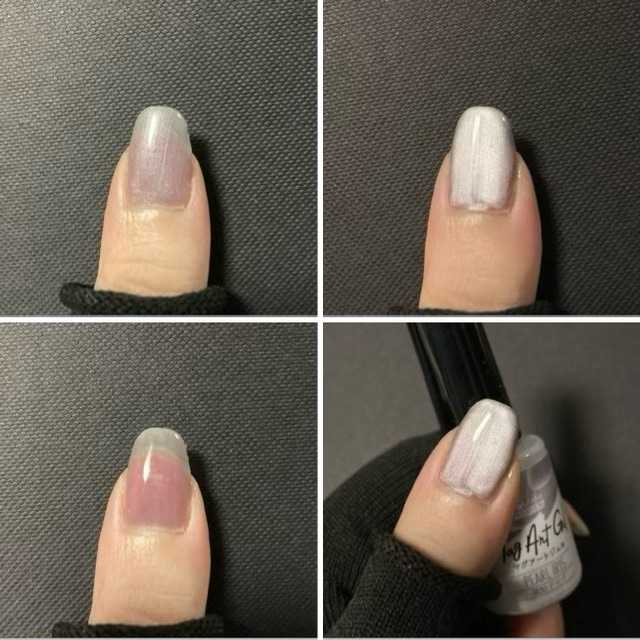 ネイル工房のコメントで、一色をそのまま塗って仕上げられるものを主流にしている、と読んだことがありますが、これもそのタイプで2度塗りするとラメが光ってない角度でも爪が透けすぎることがなく、使いやすいです。
