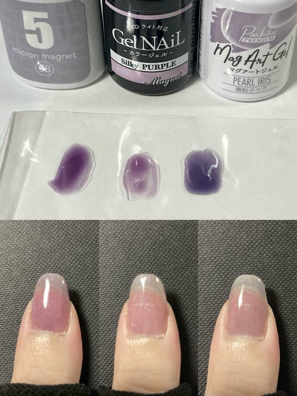 薄紫の微粒子マグネット比較(ネイル工房、セリア、キャンドゥ)