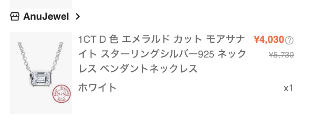 以前に楽天でもGRAのカードがついたモアッサナイトが売られていると記事にした気がしますが、その時には買いませんでした。確か1万円くらいだったと記憶しています。最近ジェルネイルのアート用品を買うのにSHEINに登録したのですが、おすすめにモアッサナイトをうたうアクセサリーが出てきて(ホロシールやらラメばかり見てたからでしょうか)、ひとつ買ってみました。1ctエメラルドカットのネックレスです。価格はセール価格で4000円でした。定価は5700円ほどでした。一式こんな感じで届きました。別に害はないのですが、なんとなくID部分は消してます。カードにあるURLにIDを入れ、紙にあるのと同じ情報が表示されるのも確認できました。素材はスターリングシルバーとのことです。こういう商品だとメッキに使っているだけでK18などの刻印を押している場合もあるので、本当にモアッサナイトなら合金でもいいと思っていましたが、磁石にはつかず重みもあるのでどうやら銀のようです。ちなみに留め具だけは磁石が付きましたが、貴金属でも引き輪の中のバネは鉄のことがあるので問題ありません。中身を出して写真を撮ったのですが、日があるうちに撮れずダイヤやキュービックジルコニアとの違いがわかりにくかったので、また撮り直してアップします。