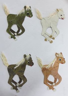 午が出来上がりました。葉っぱの色がそれぞれ違って、目がくりっとしてるのやら精悍な顔立ちのやら、いろいろできました。「ロバみたい・・」「顔がムーミンみたい・・・」・・と大笑いしながらのお教室でした。 押し花・レカンフラワー日本ブログ村http://flower.blogmura.com/lecrinflower/
