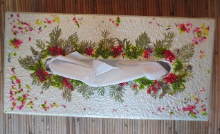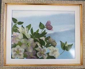 ブルー系の厚和紙にクリスマスローズをデザイン Tさん作 爽やかな雰囲気の素敵な作品が完成しましたね~~ 押し花・レカンフラワー日本ブログ村http://flower.blogmura.com/lecrinflower/