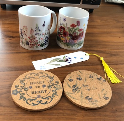 押し花プリント小物雑貨編N.Sさん作素敵なマグカップやコースターが出来ましたね~~~自作のカップで飲むコーヒーは、また、一段とおいしさもアップ!!にほんブログ村