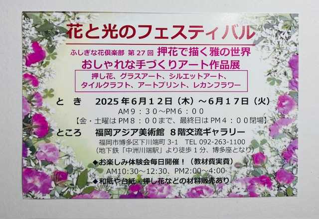 もうすぐ「花と光のフェスティバル」始まります。アート雅・雅押花の会主催、毎年恒例の花と光のフェスティバル6月12日(木)から福岡アジア美術館で始まります。華やかな筒井雅代先生を中心に、会員の力作が集います。にほんブログ村